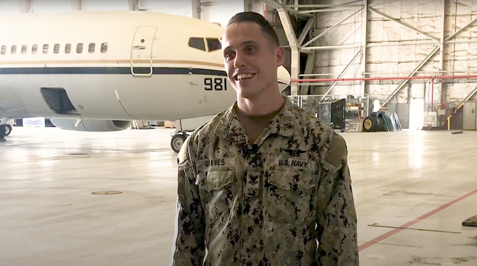 As a Navy aviation machinist’s mate, Graves is responsible for C-40A Clipper aircraft engine maintenance and overhaul.