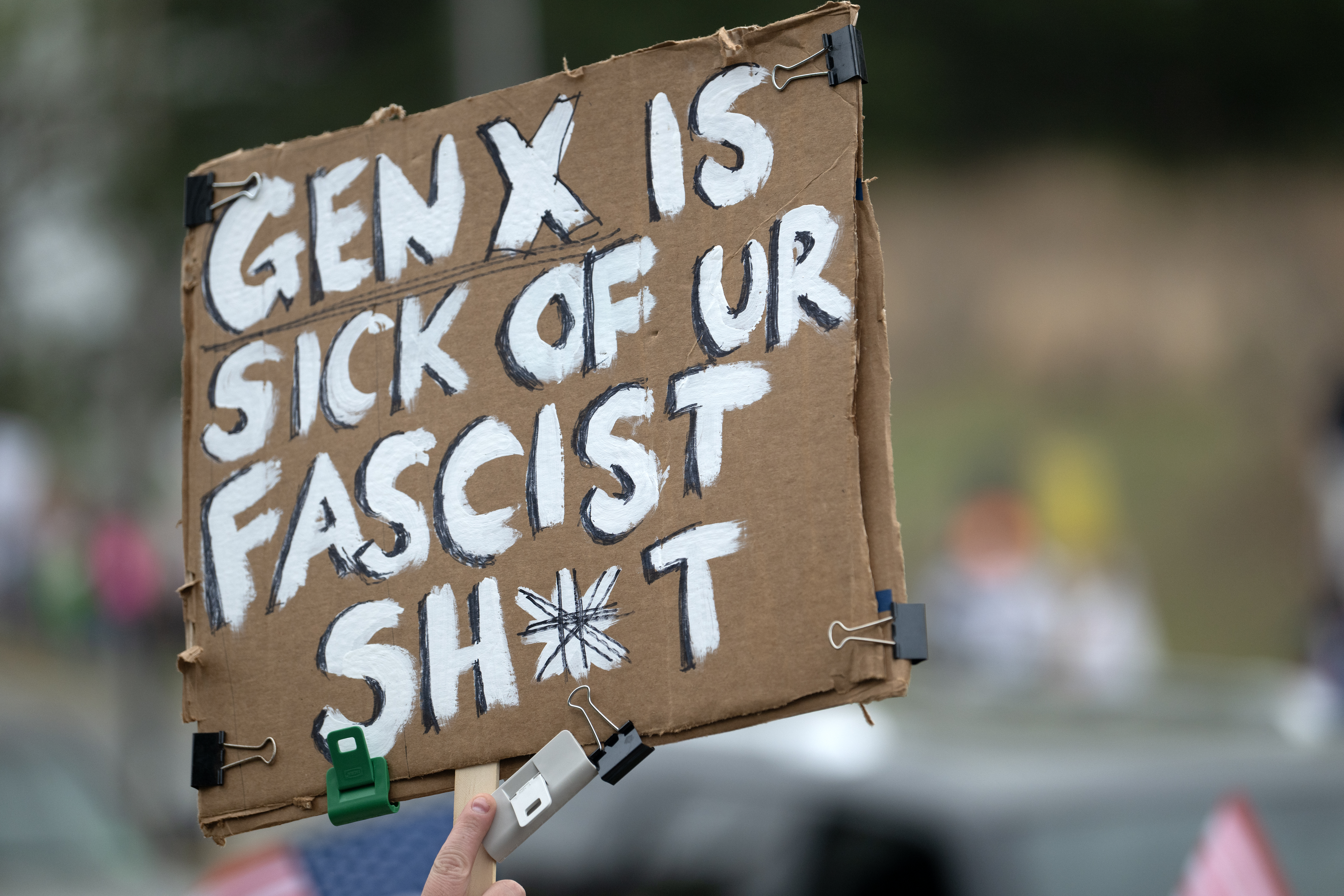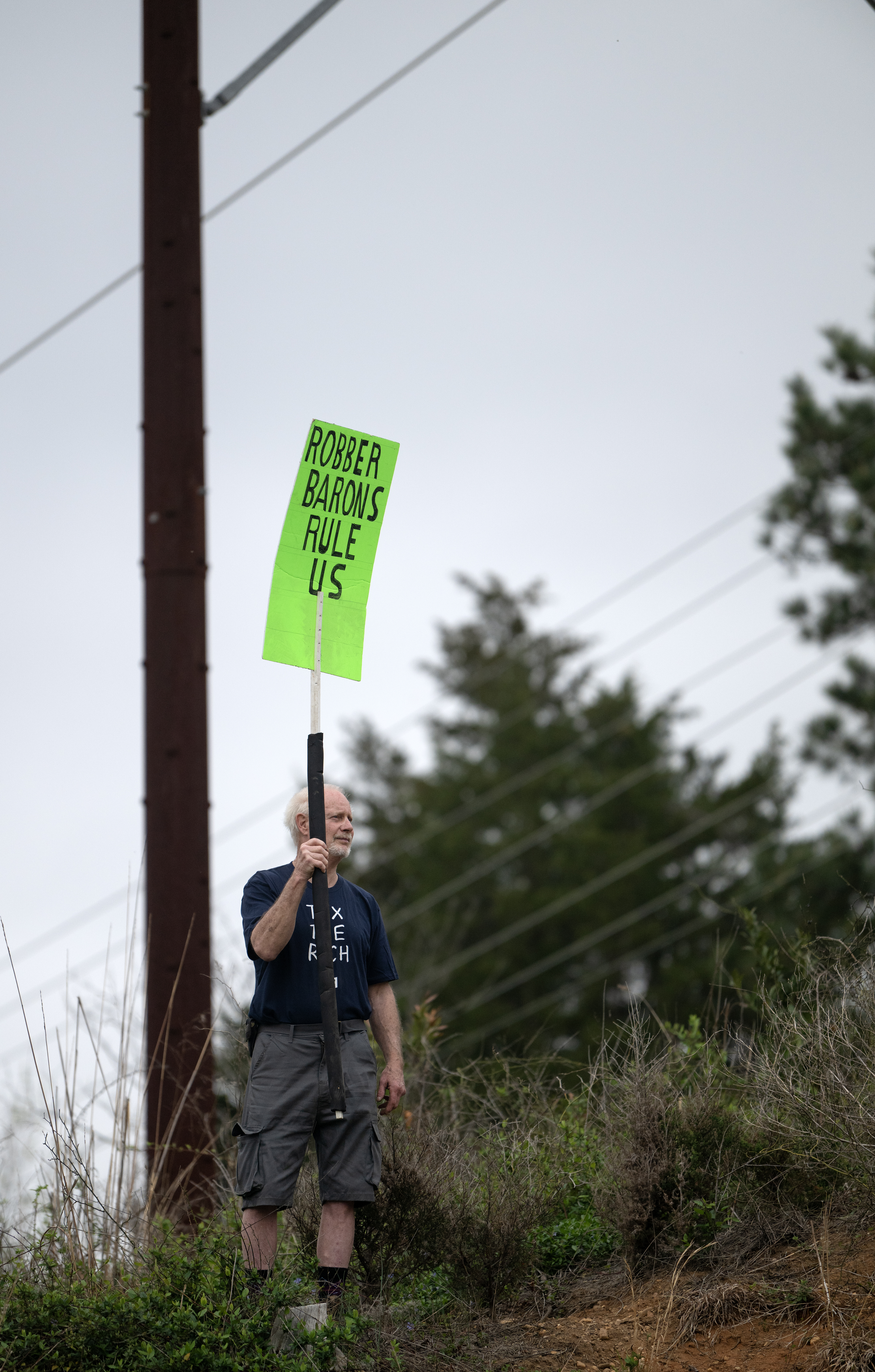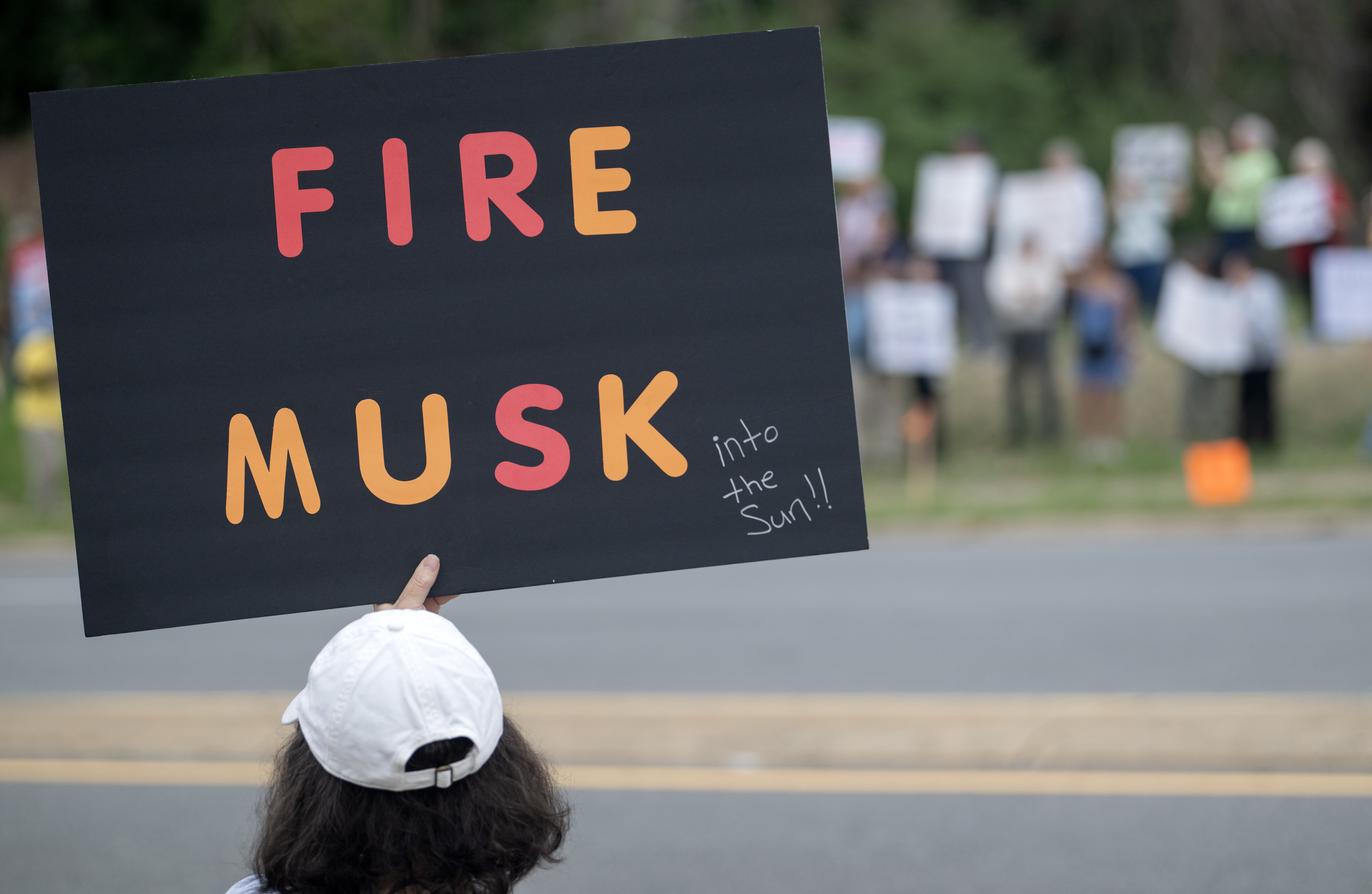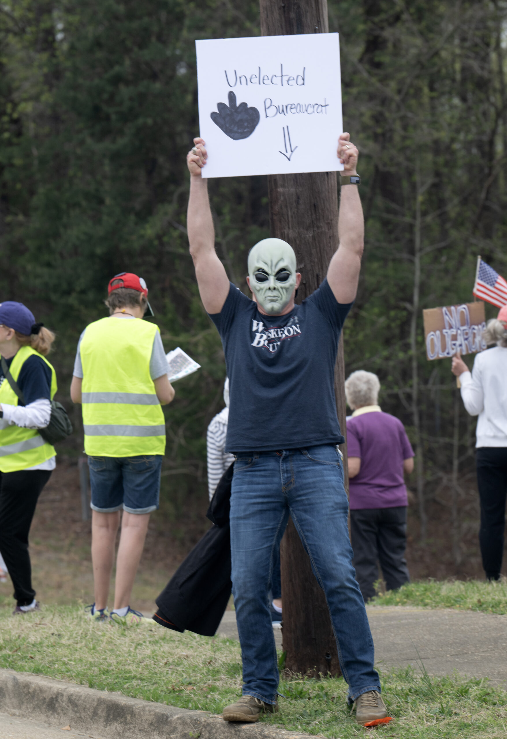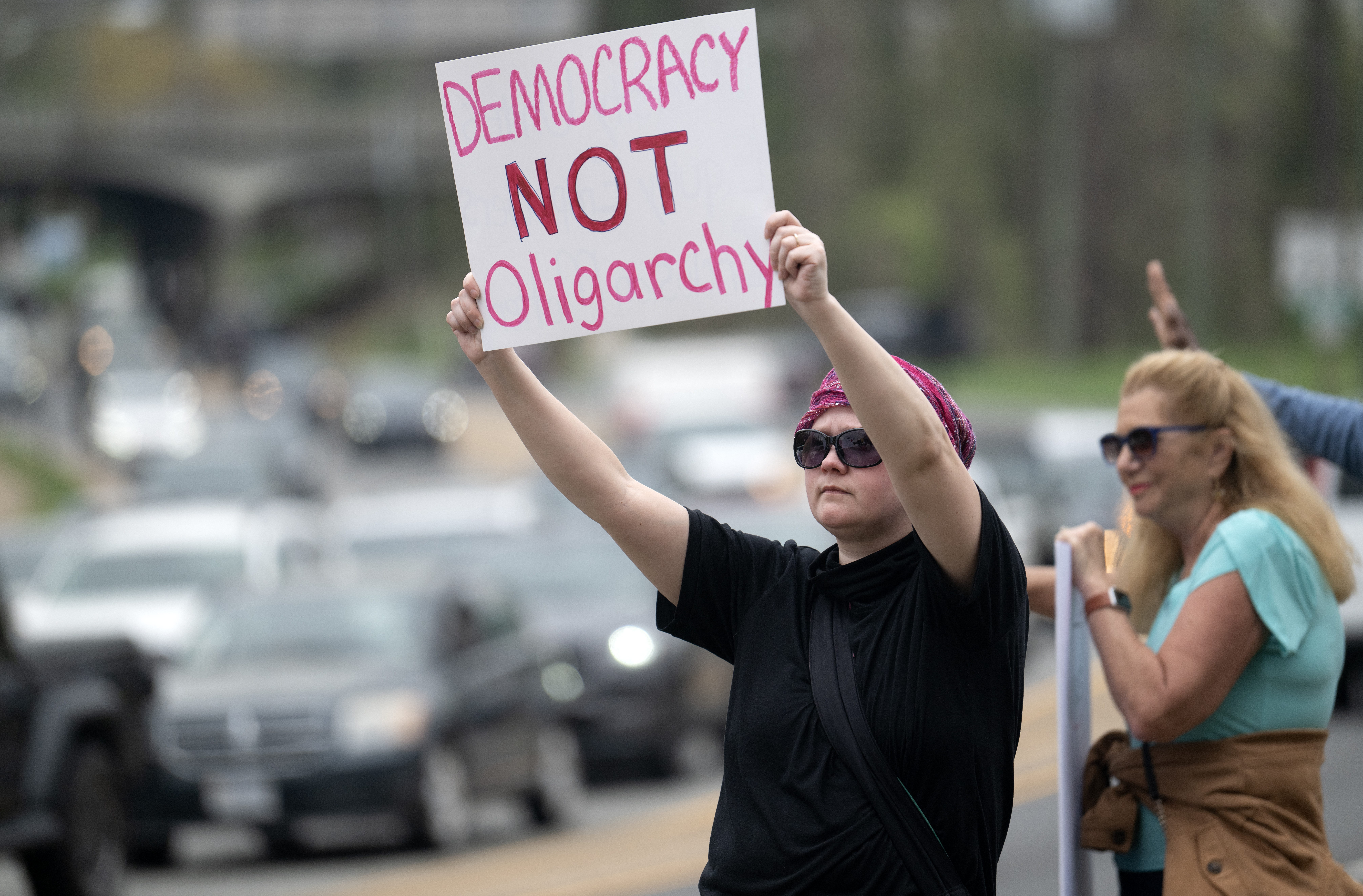 Members of the community gather during the “Hands Off” rally to protest President Donald Trump and Elon Musk’s agendas Saturday April 5, 2025. Photo by Jeff Kearney.