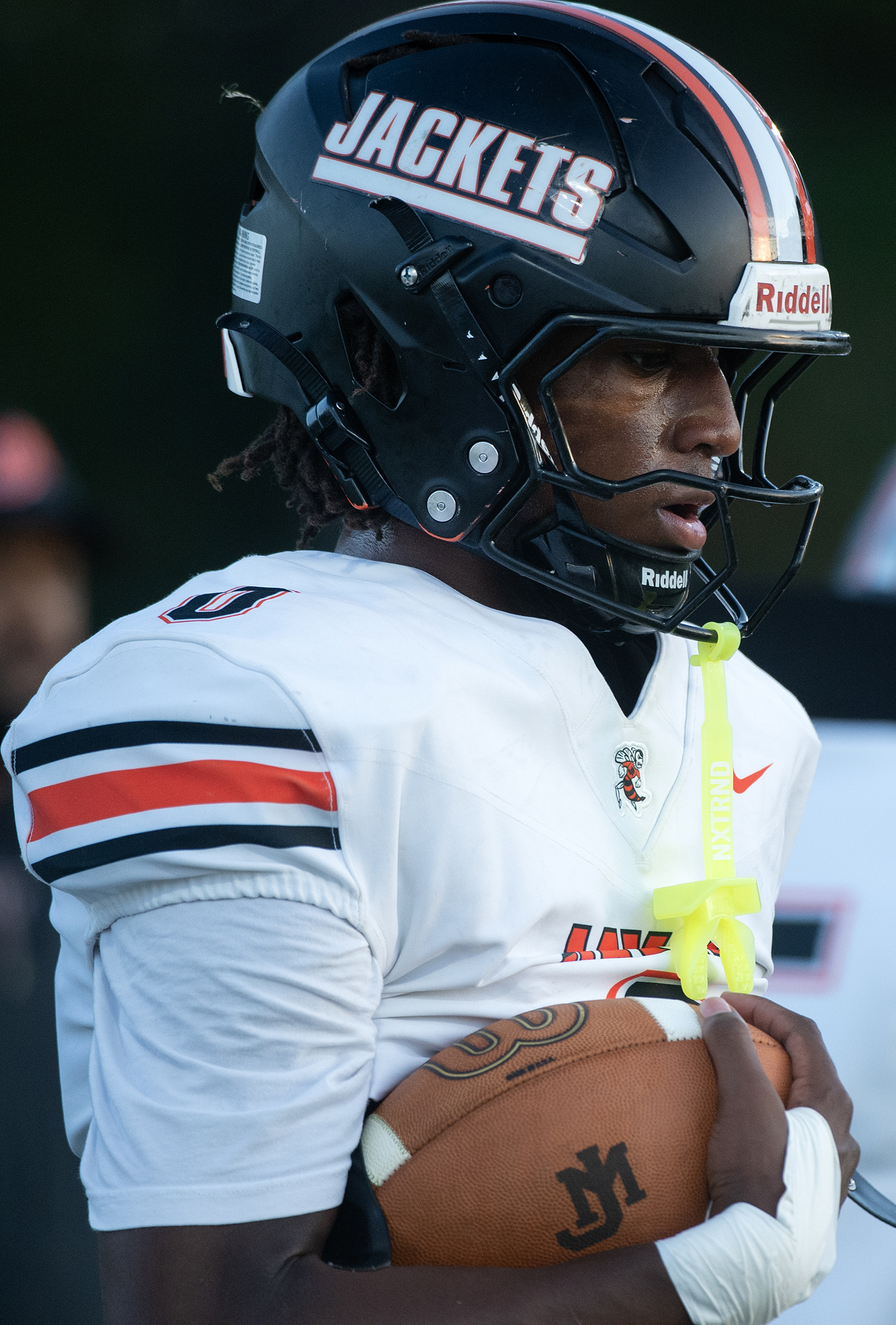 Yellow Jackey Kamrin Kea (0) mentally preps for the game ahead against the Caroline Cavaliers Friday October 3, 2025. Photo by Jeff Kearney.