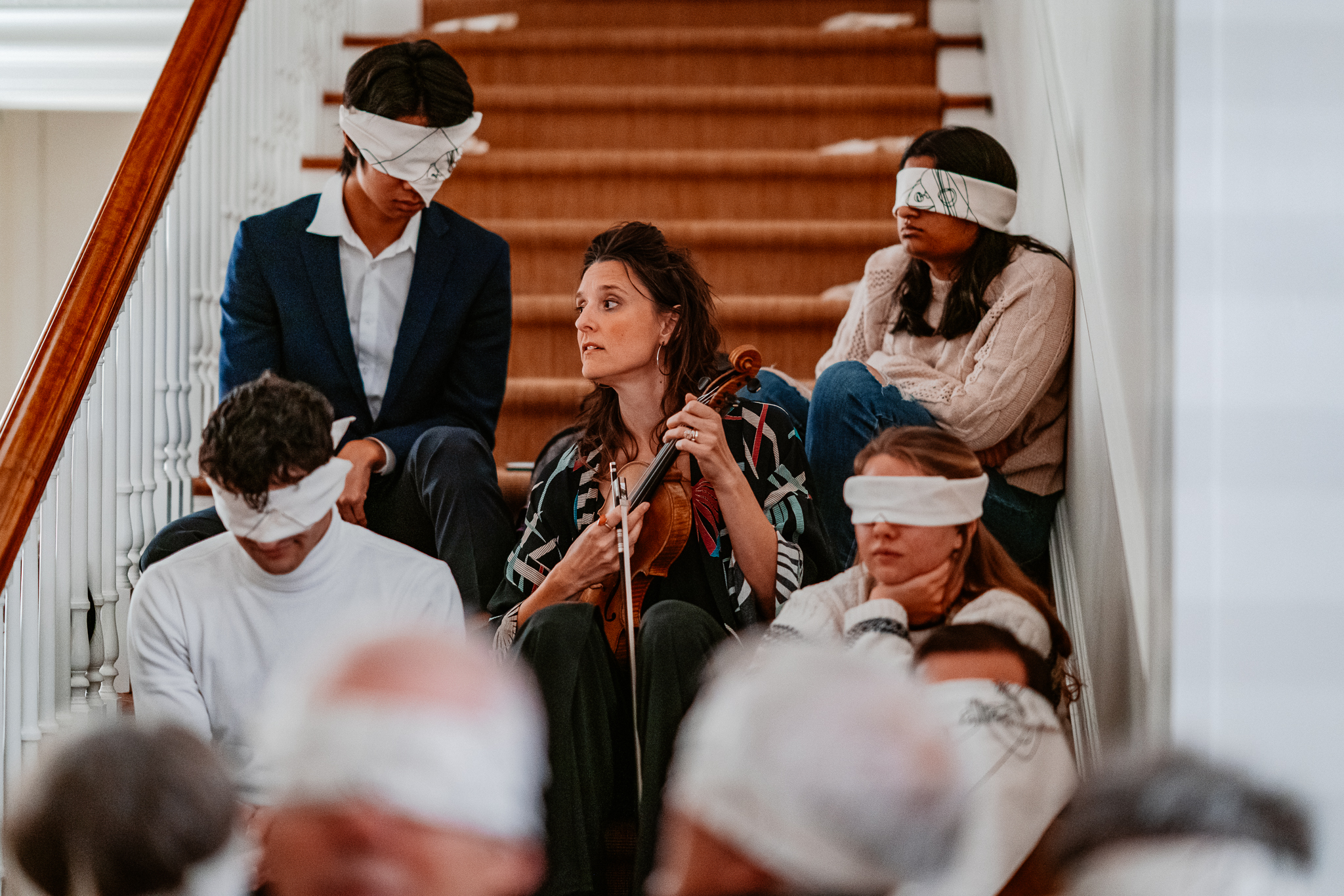 Since the Golden Hour audience is seated in circles, not facing a stage, the performers are free to roam around the listeners so the sound is constantly shifting.