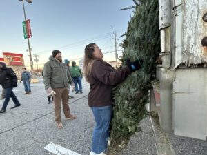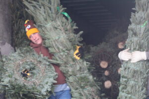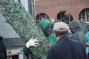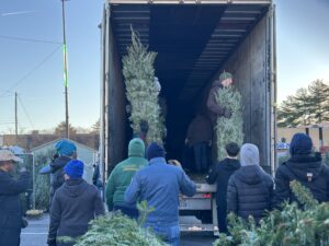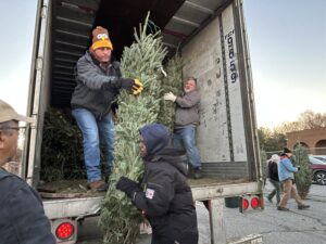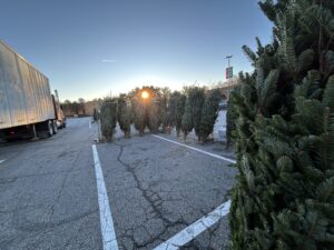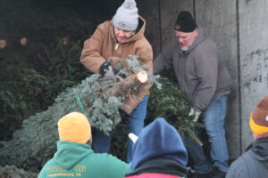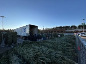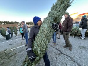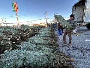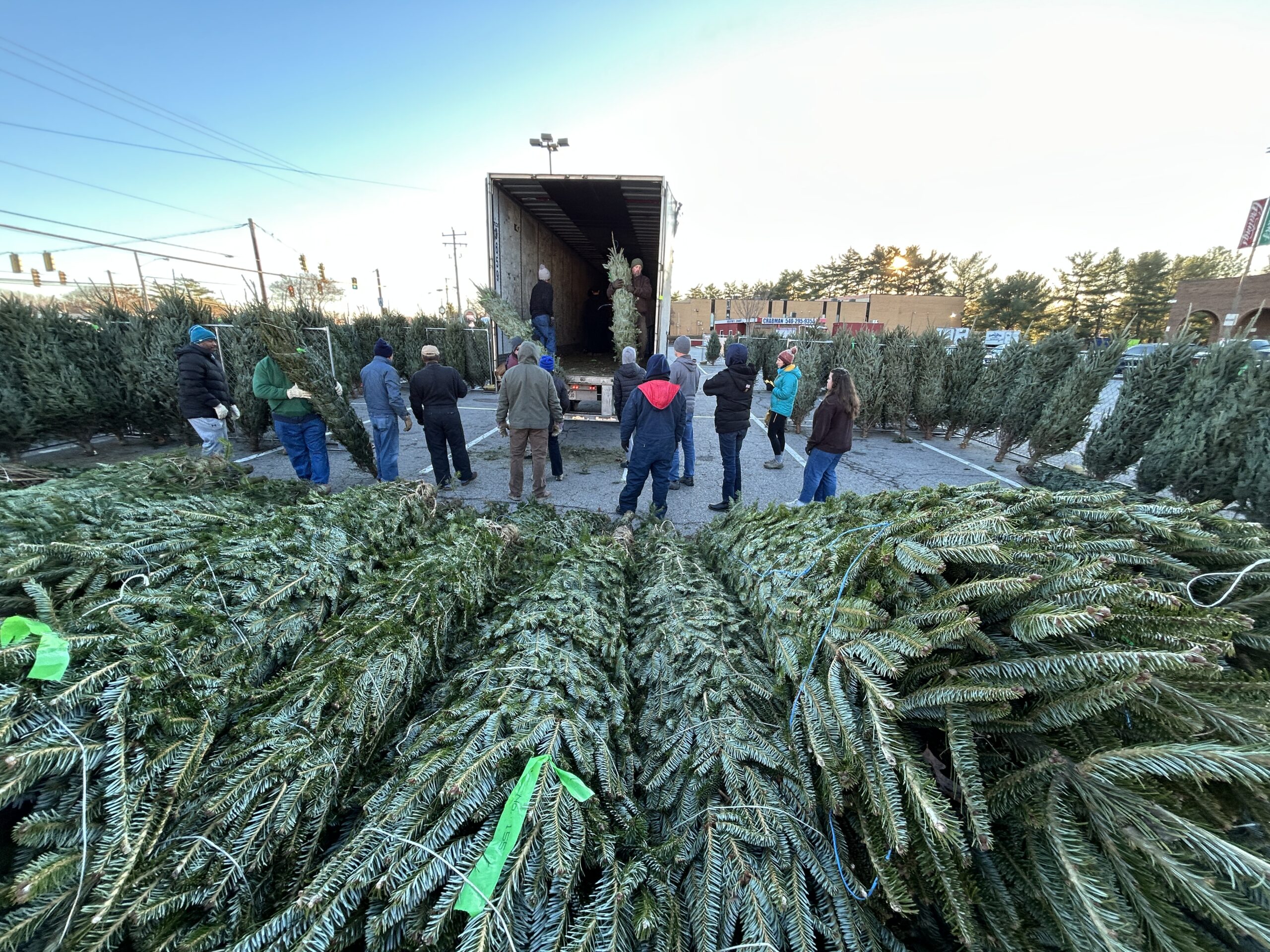 The Fredericksburg Host Lions Club met a delivery truck early Saturday morning at Greenbriar Shopping Center, as nearly 500 Christmas trees arrived from Western Virginia. Volunteers began unloading at 7 a.m., kicking off the club’s annual tree sale on Route 3. Sales will continue daily until the lot is sold out.