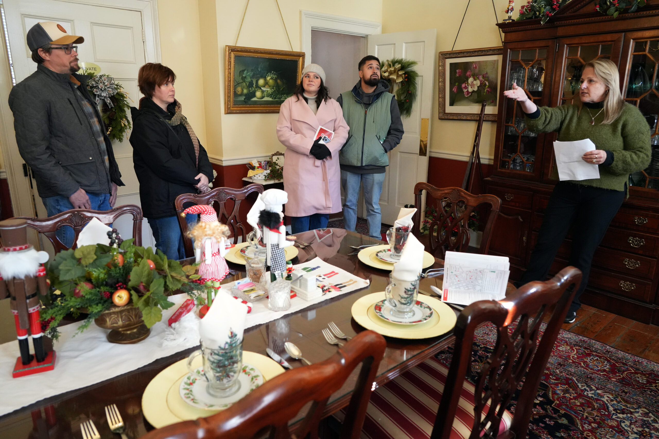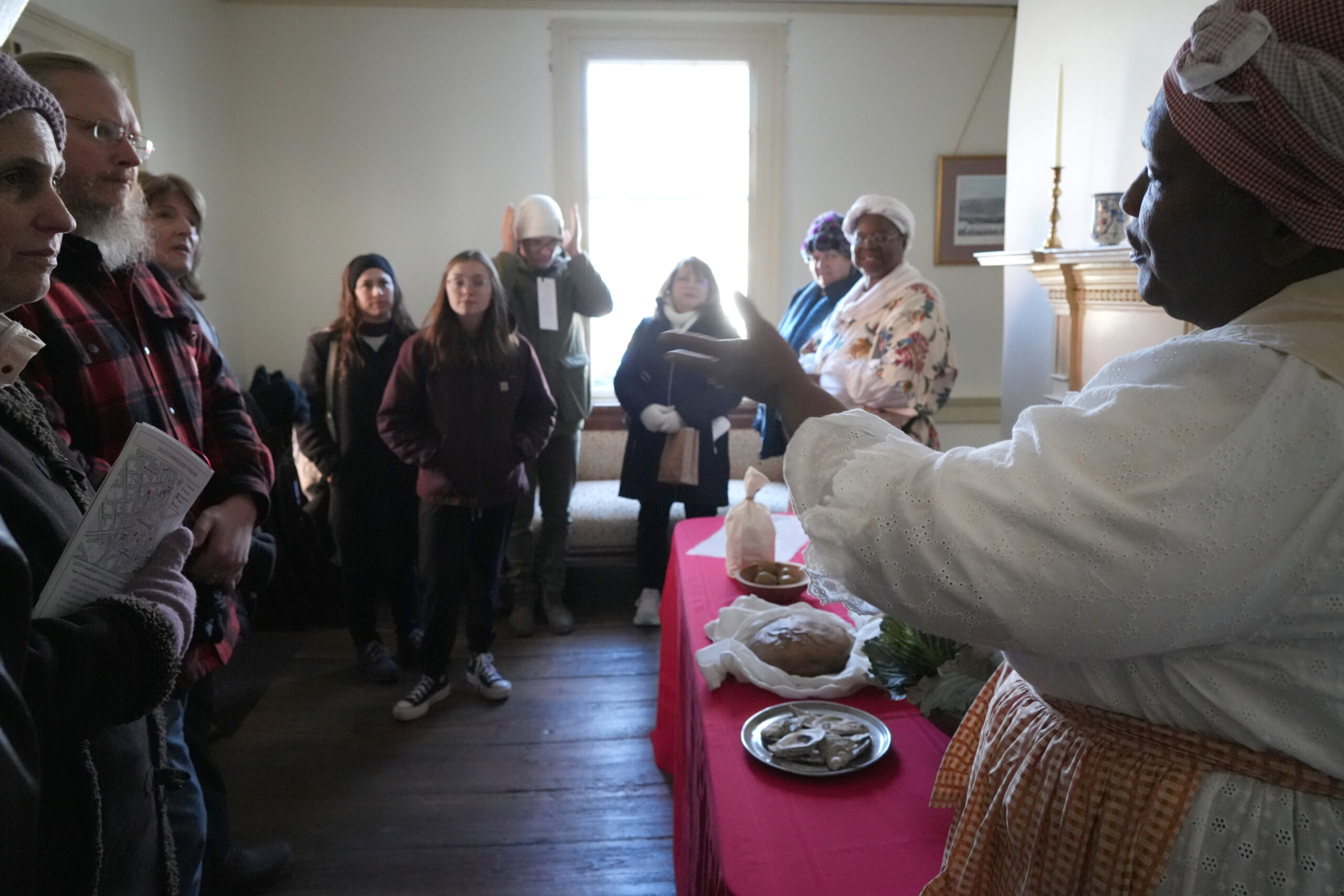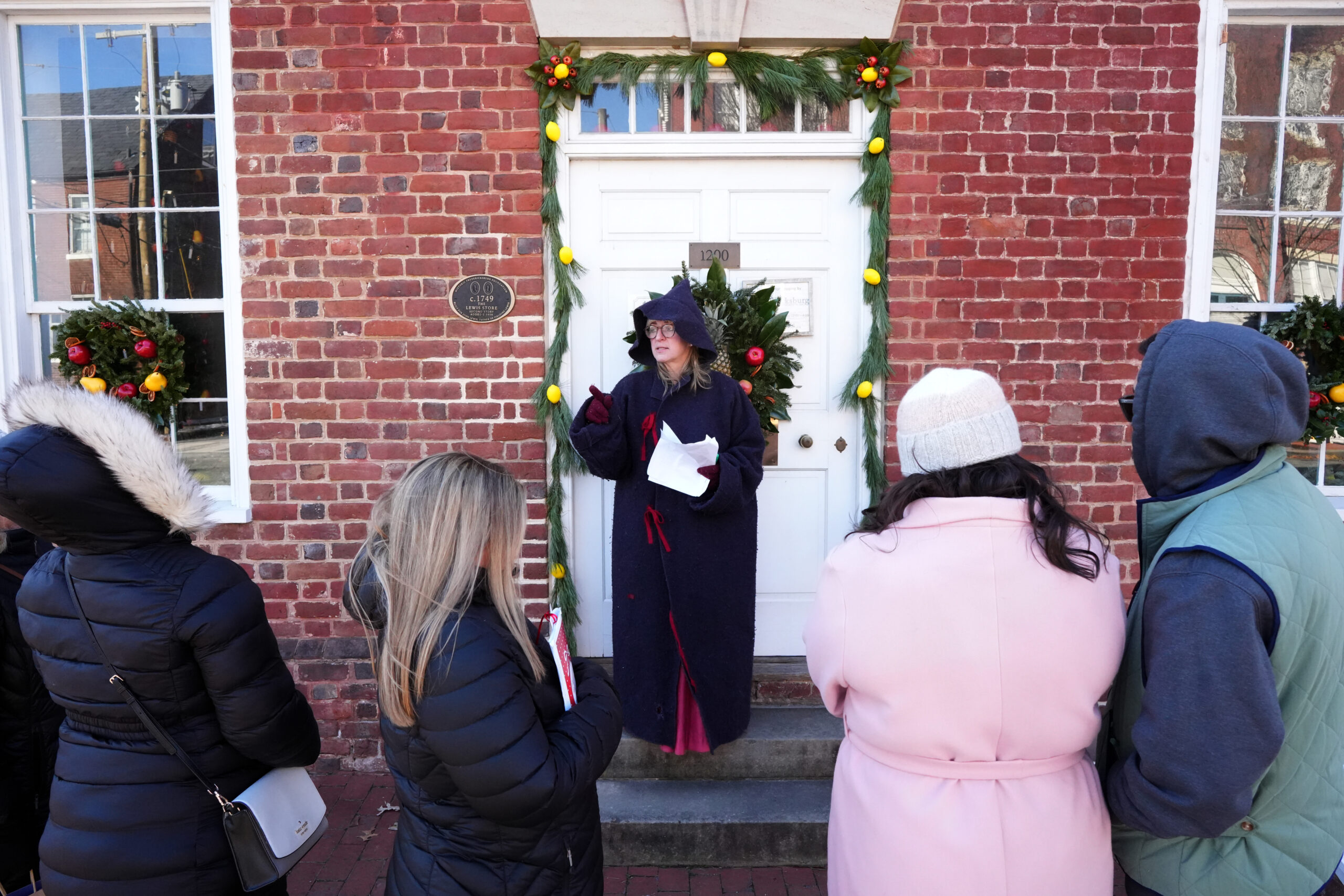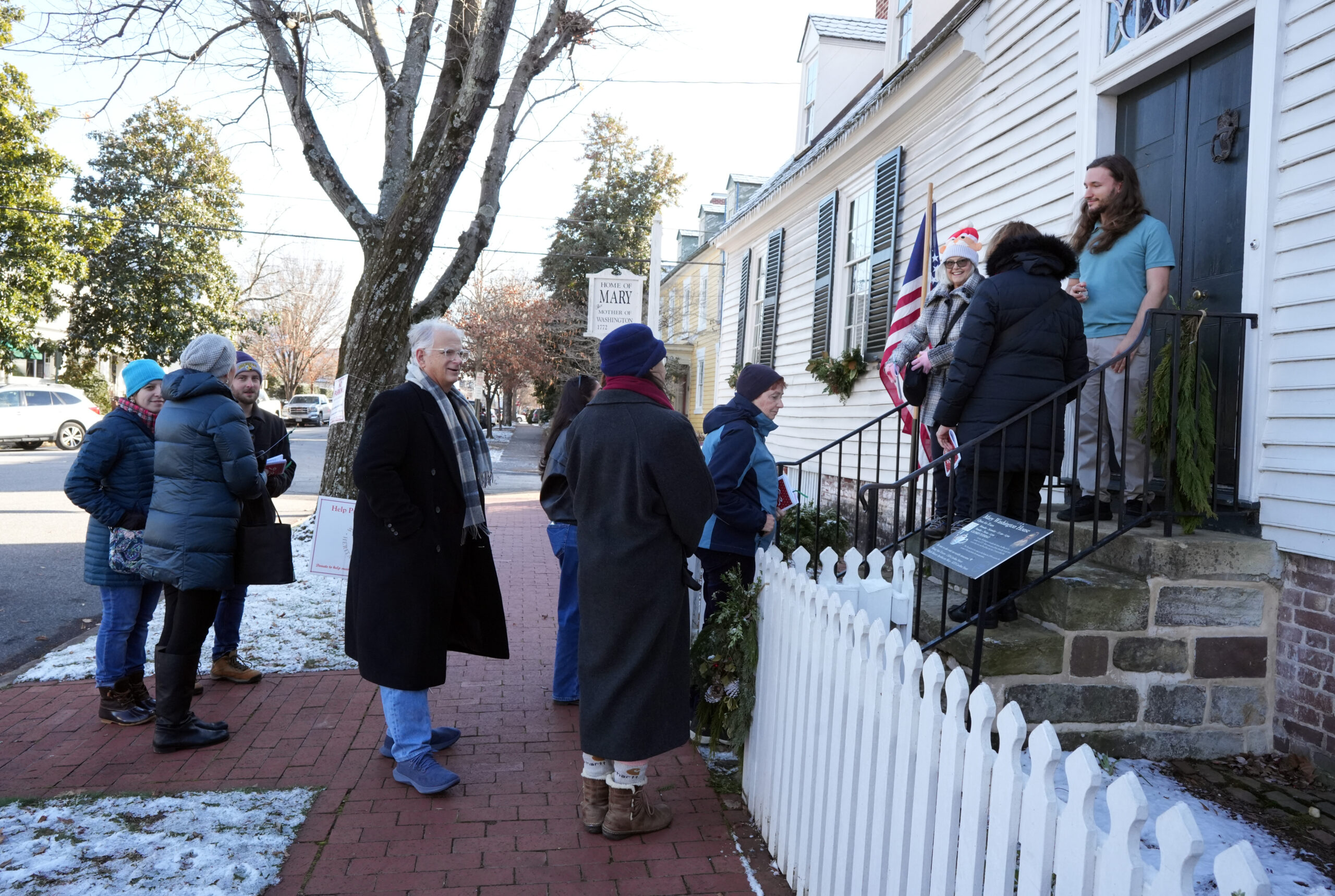 Visitors to the Fielding Lewis Store at 1200 Caroline Street wait in the cold temperatures to go inside to listen to a story about the history of the store. It was constructed in 1749 and was designed to house, market, and sell merchandise brought to Fredericksburg by John and Fielding Lewis’s international shipping business.