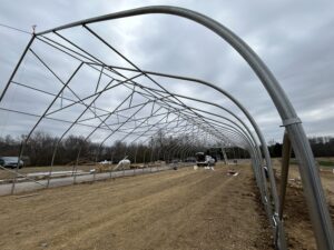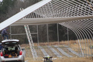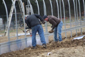 Just steps away, work continues on a 30-by-96-foot greenhouse, with the frame already in place thanks to funding from the Honeywell Charitable Fund of the Community Foundation of the Rappahannock River Region.