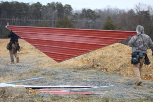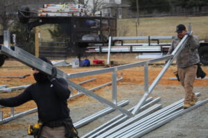 Installation on the barn began Monday. The project is being powered by local Lions clubs — including the Greater Falls Run Lions Club and Aquia Harbour Host Lions Club — along with Lions Clubs International.