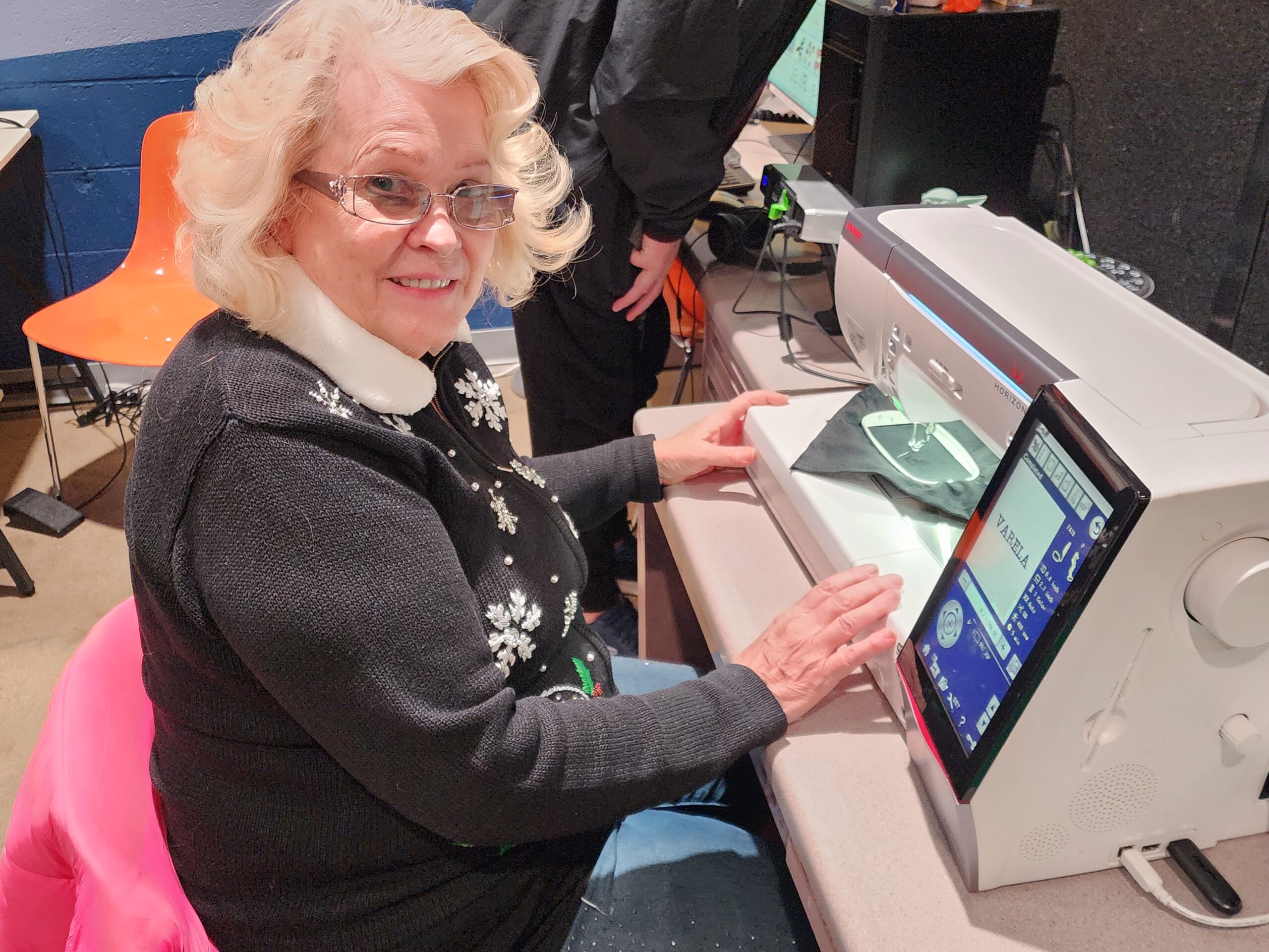 Vicki Varela uses one of the IdeaSpace’s sewing machines to make her creations.