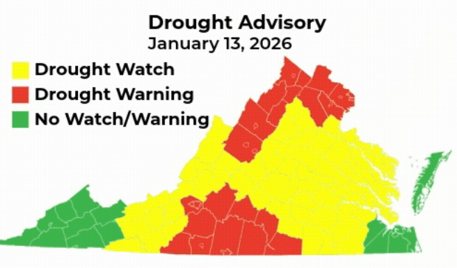 Drought Watch and Warning now affect much of Northern and Central Virginia