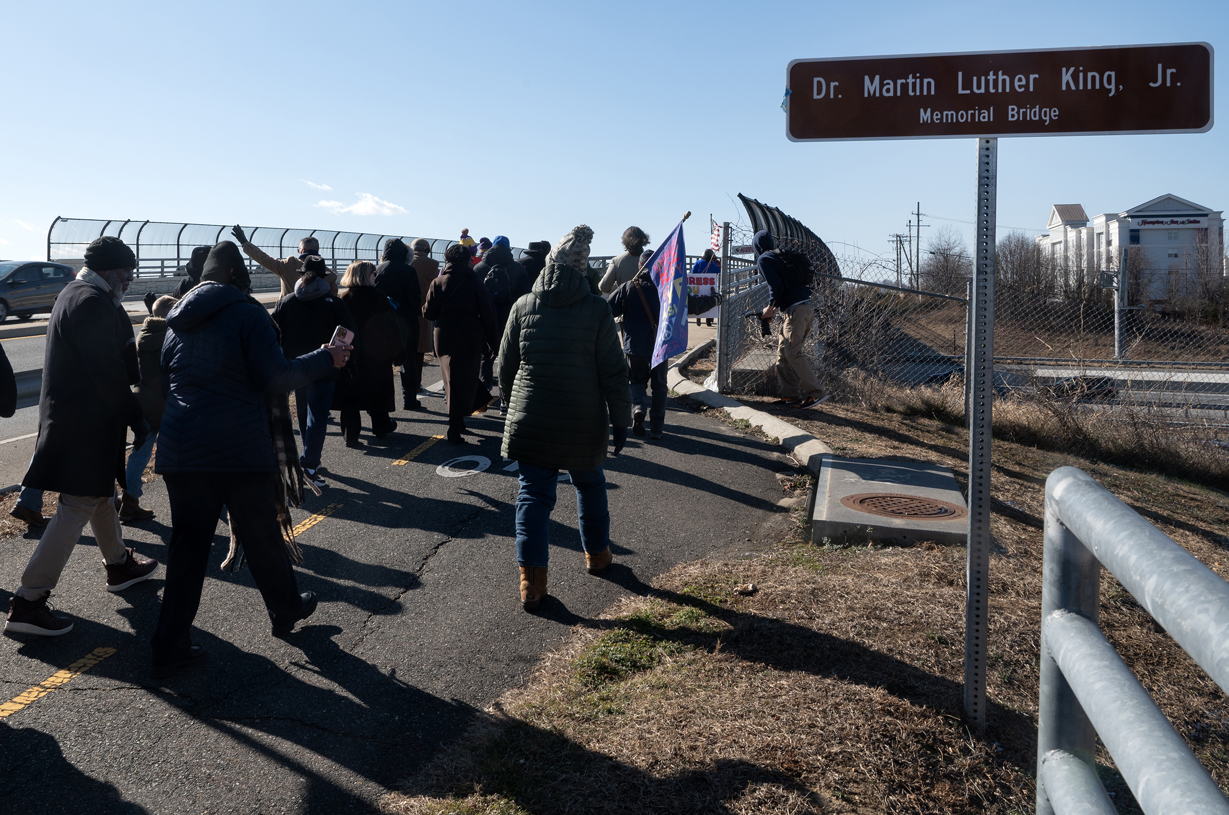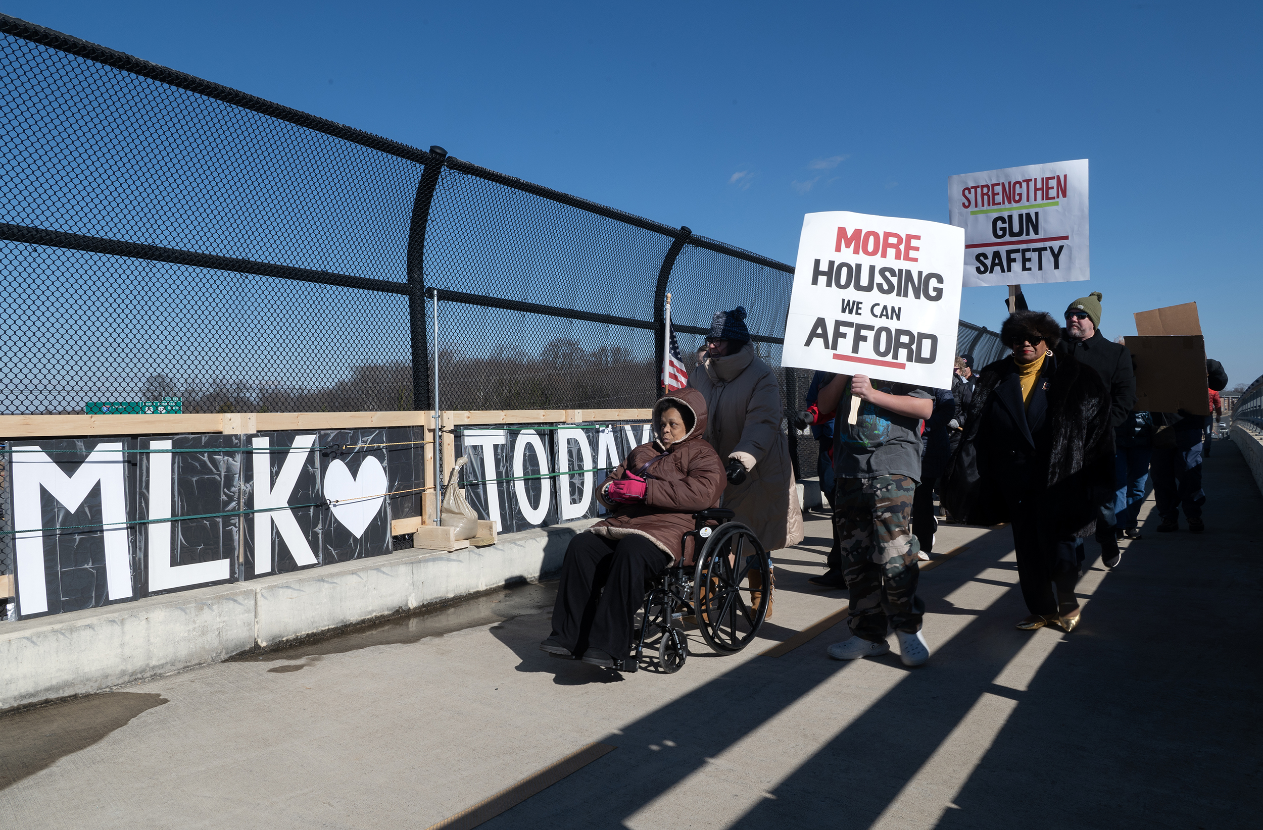 Members of the Fredericksburg community walk across the MLK Memorial Bridge celebrating the life of Dr. Martin Luther King Jr. Monday January 19, 2026. Photo by Jeff Kearney.