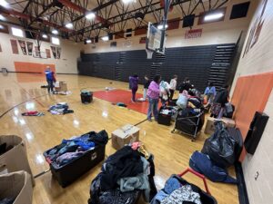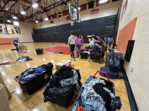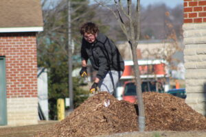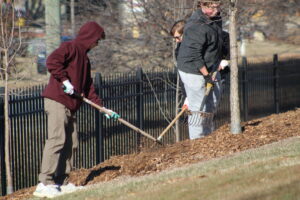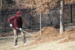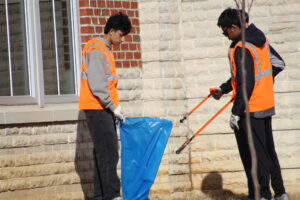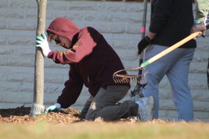 Projects included The Giving Tree initiative inside the gym, along with litter cleanup and tree mulching efforts across the school grounds.