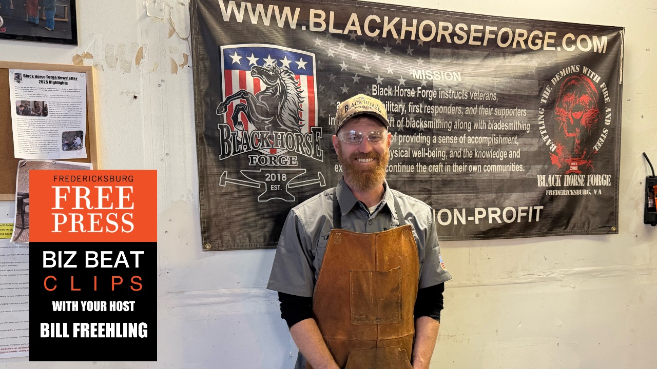 This week on Biz Beat Clips we take you Black Horse Forge in Stafford County, a non-profit that instructs veterans, active-duty military, first responders and their supporters in the art and craft of blacksmithing.