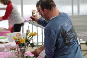 Staff and participants yesterday were assembling vases and preparing bouquets for delivery across the region. Alexis Fox says the program provides person-centered support, helping adults grow, develop, and thrive through meaningful daily activities.