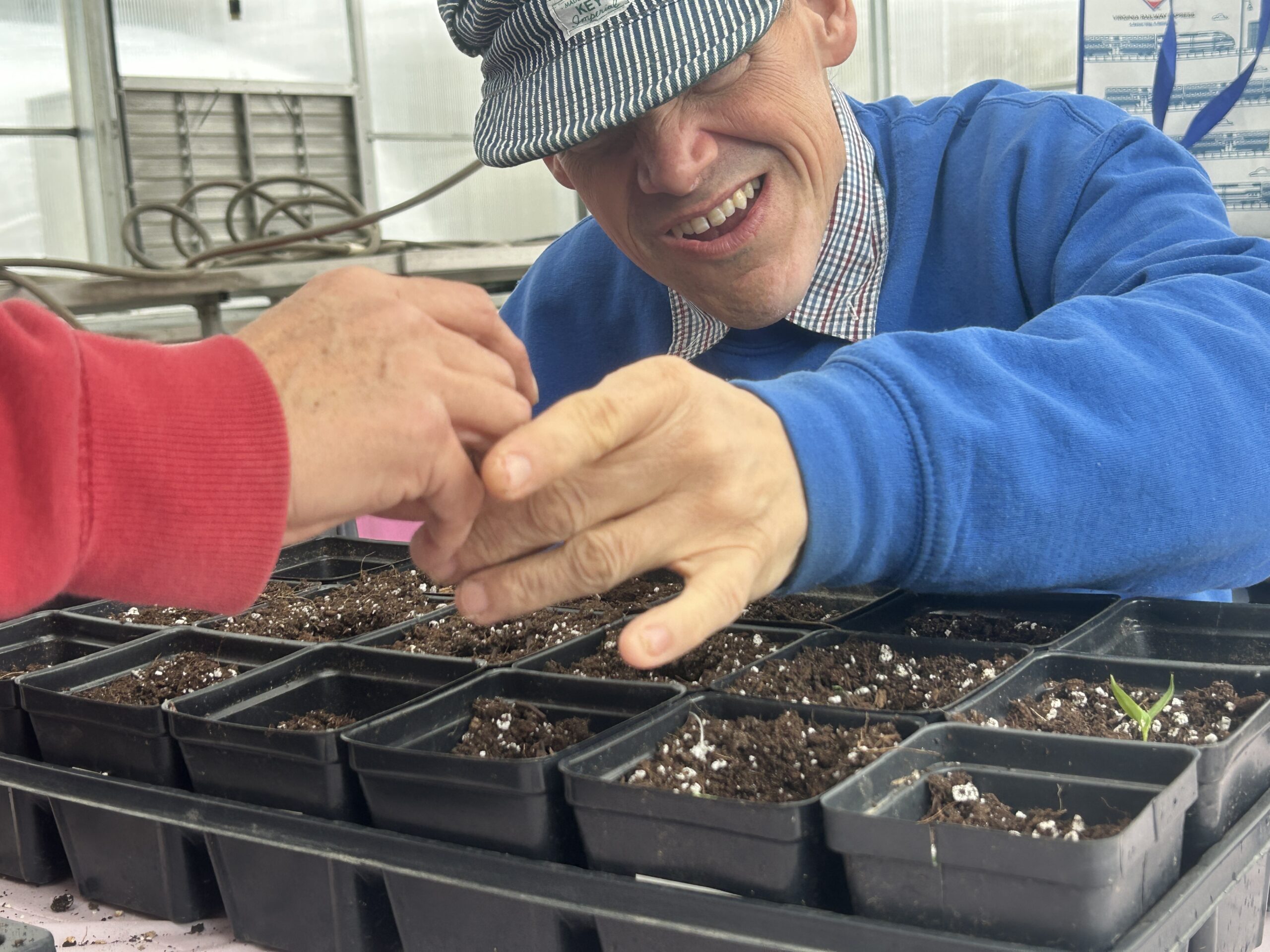 Under the direction of Alexis Fox, adults in RAAI’s day support program for individuals with intellectual and developmental disabilities are growing the very plants the community will soon take home.