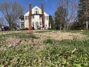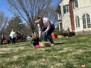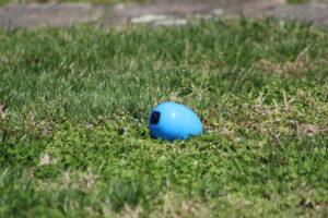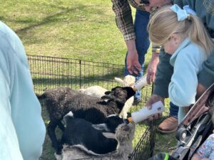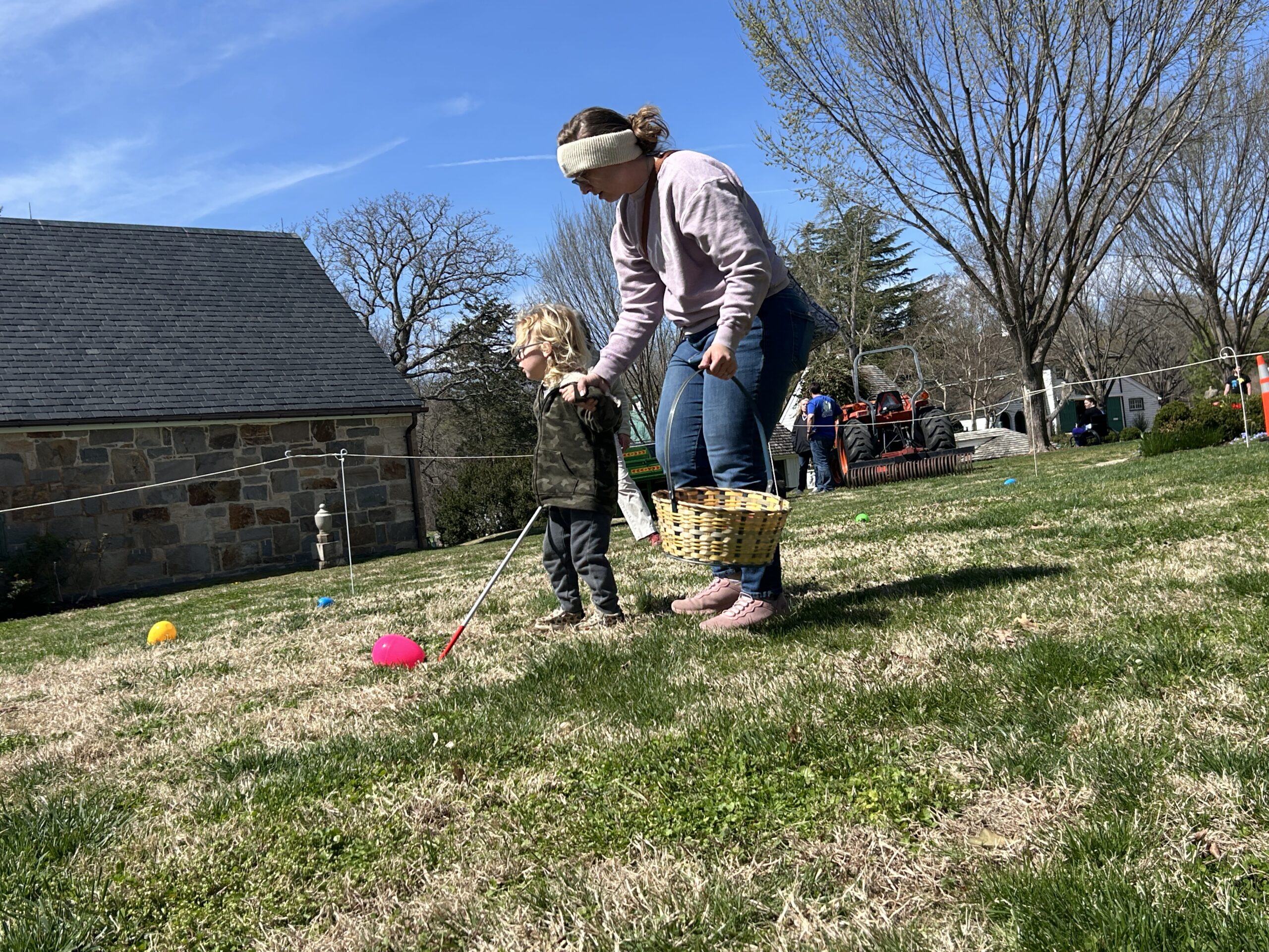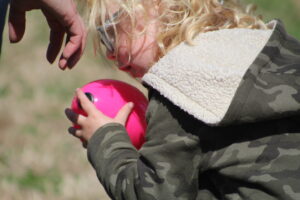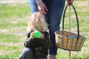 Children used chirping eggs to find prizes by sound and touch, while siblings joined in with blindfolds for a shared experience. Families also enjoyed a petting zoo, Touch-a-Tractor, and sensory activities.