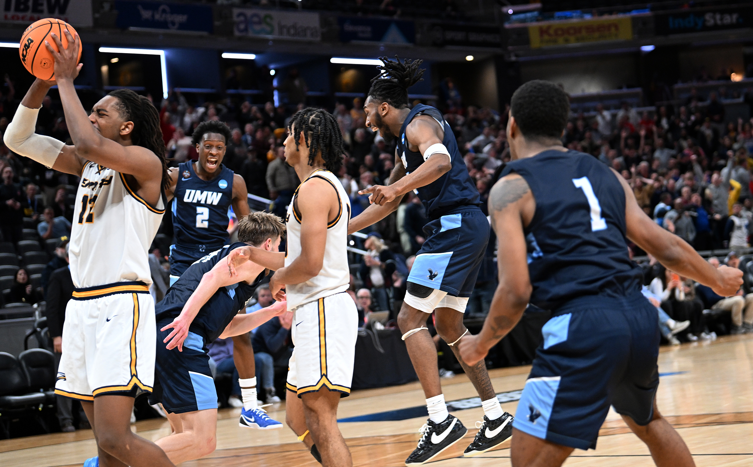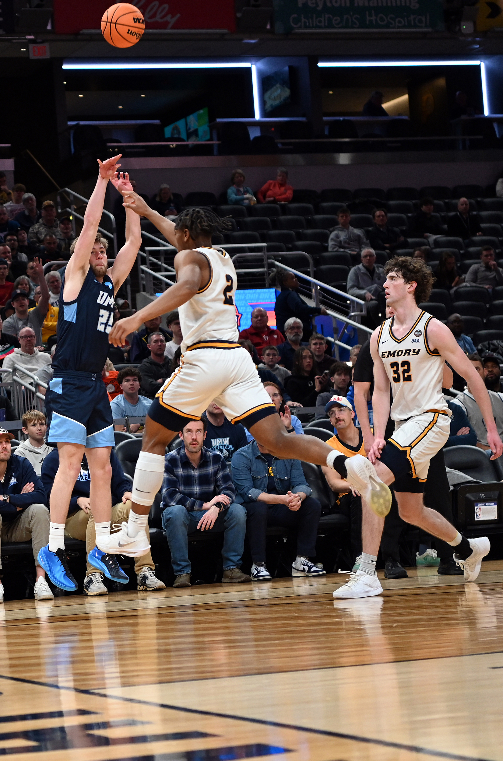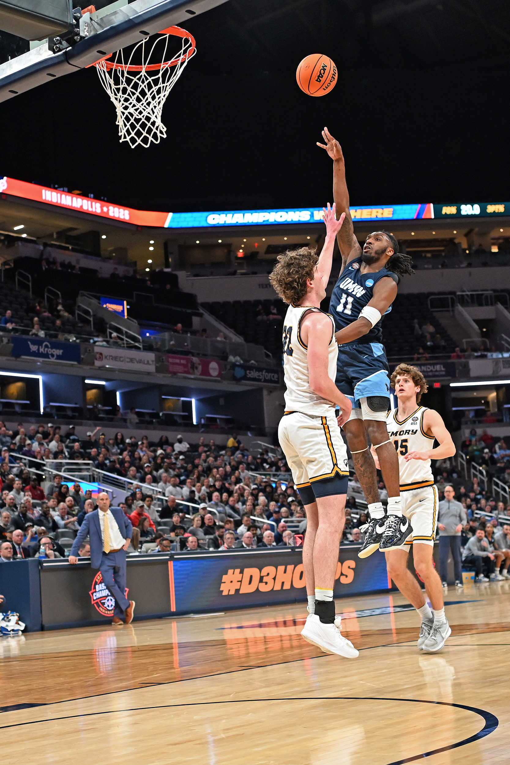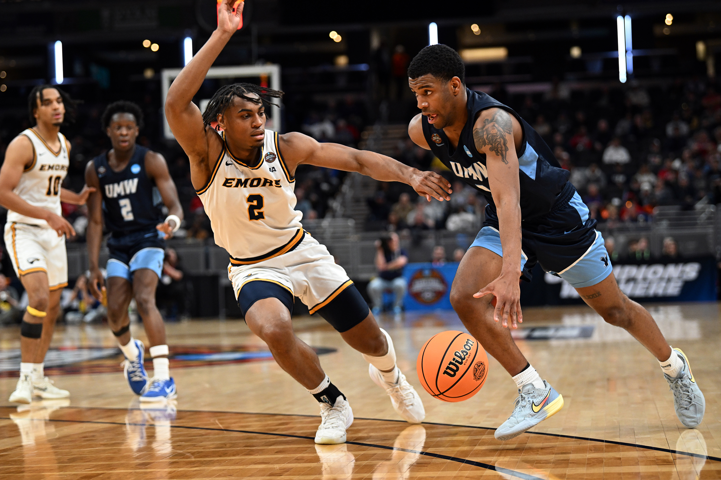The University of Mary Washington Eagles win the NCAA DIII Championship Game against Emory University at Gainbridge Field-house in Indianapolis, IN Sunday April 5, 2026. Photo by Jeff Kearney.