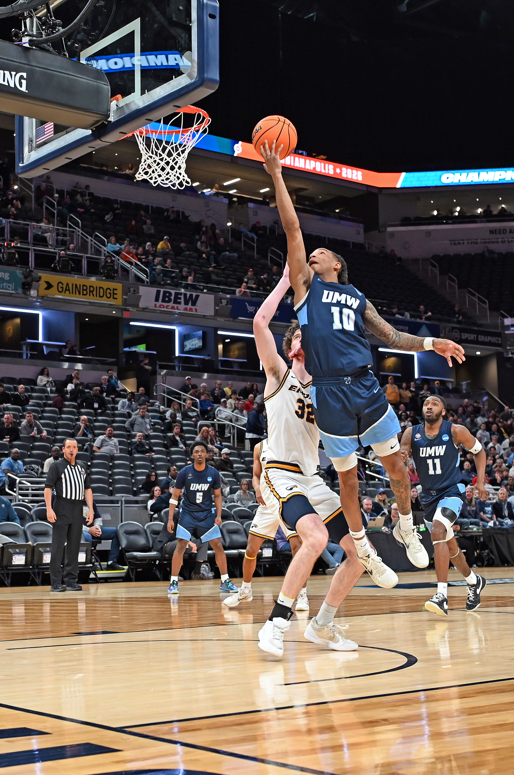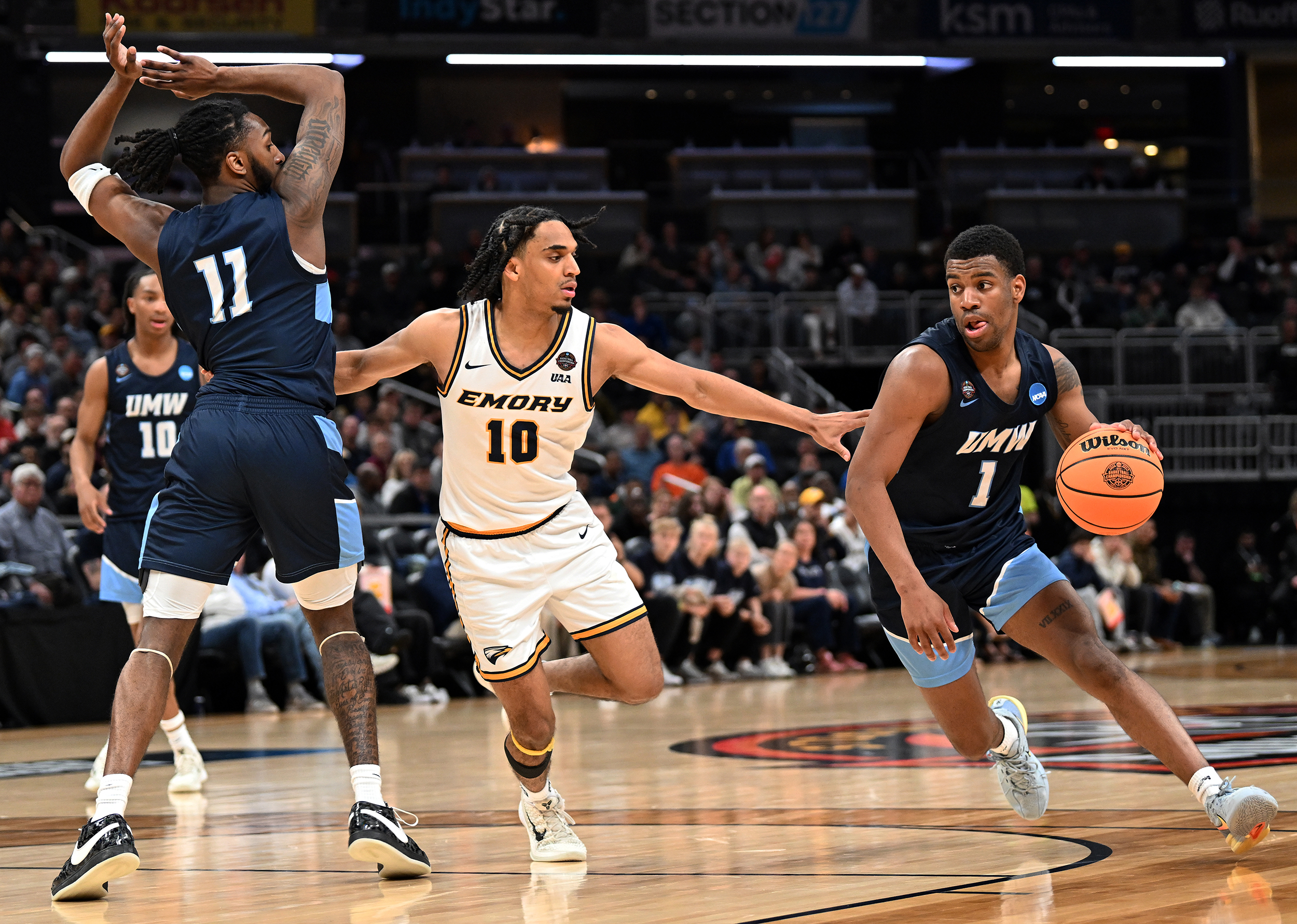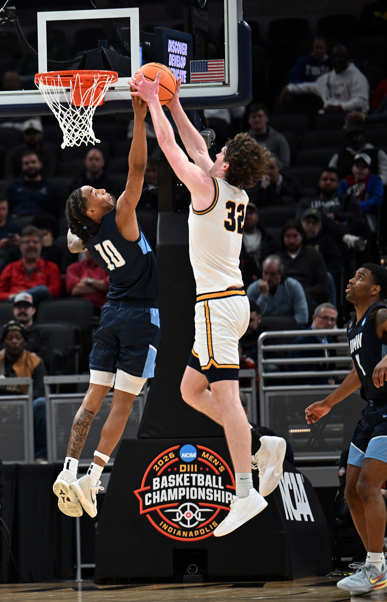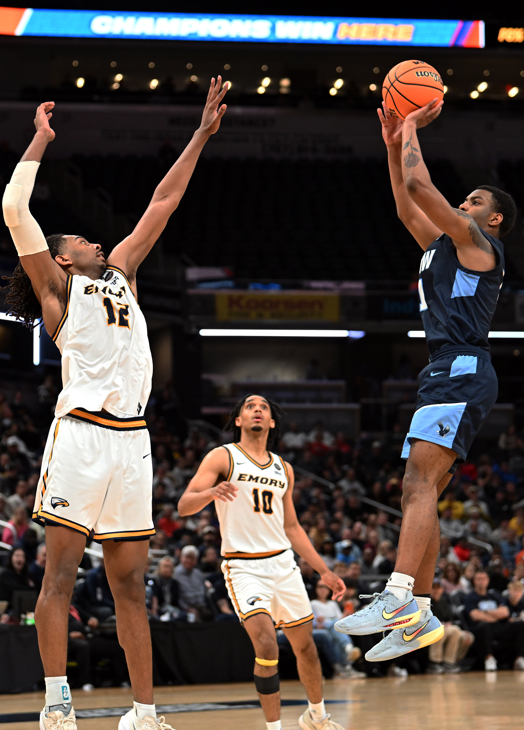 The University of Mary Washington Eagles win the NCAA DIII Championship Game against Emory University at Gainbridge Field-house in Indianapolis, IN Sunday April 5, 2026. Photo by Jeff Kearney.