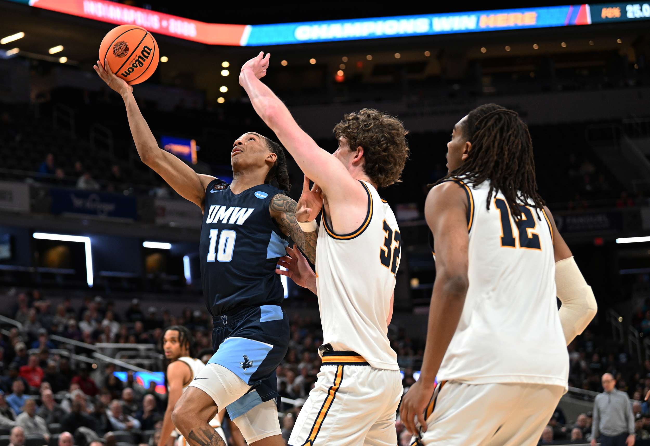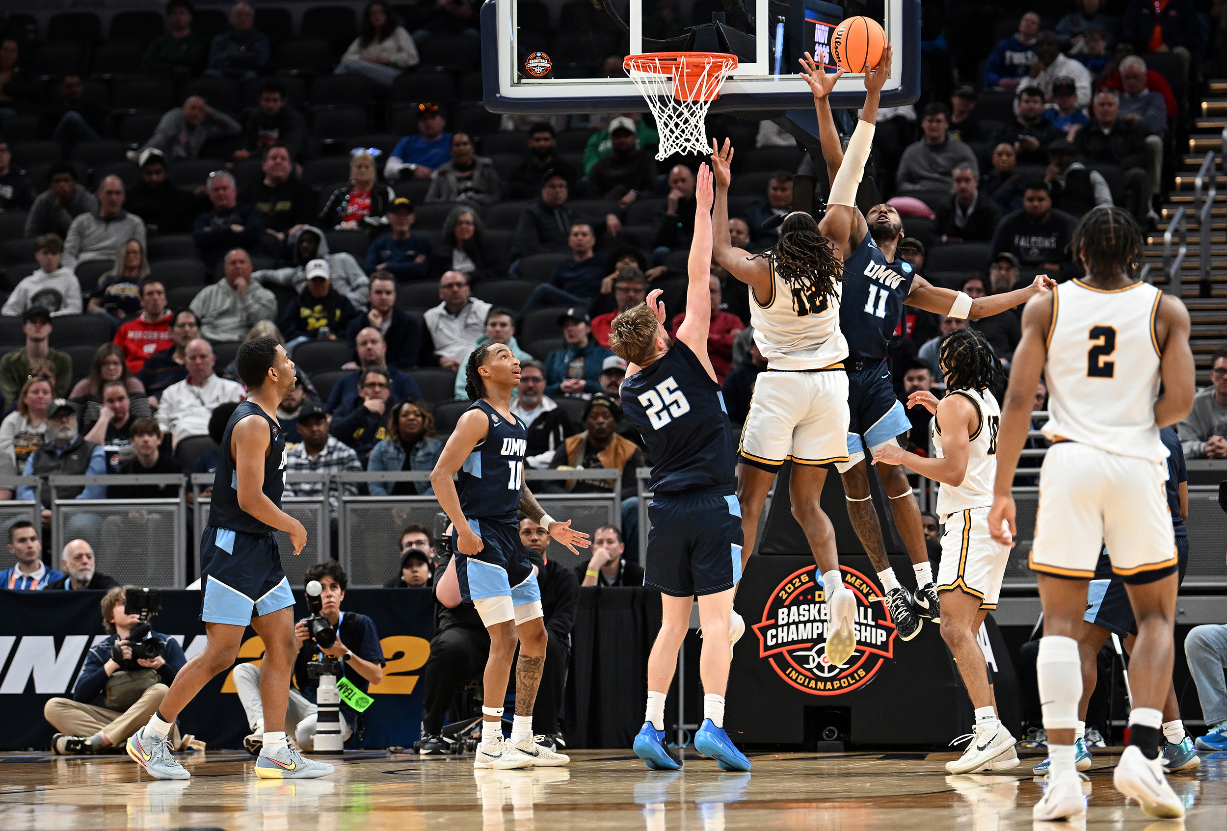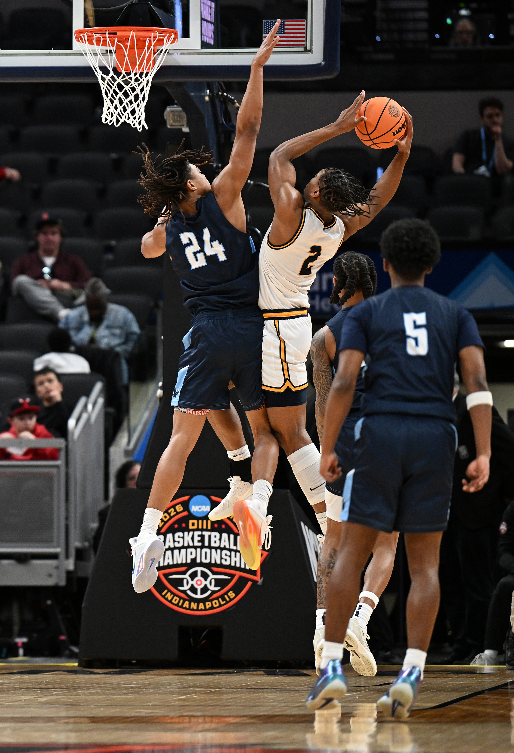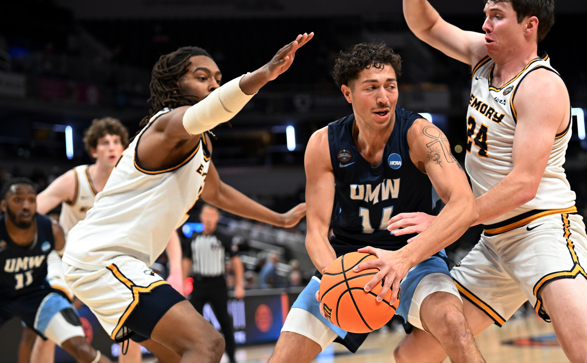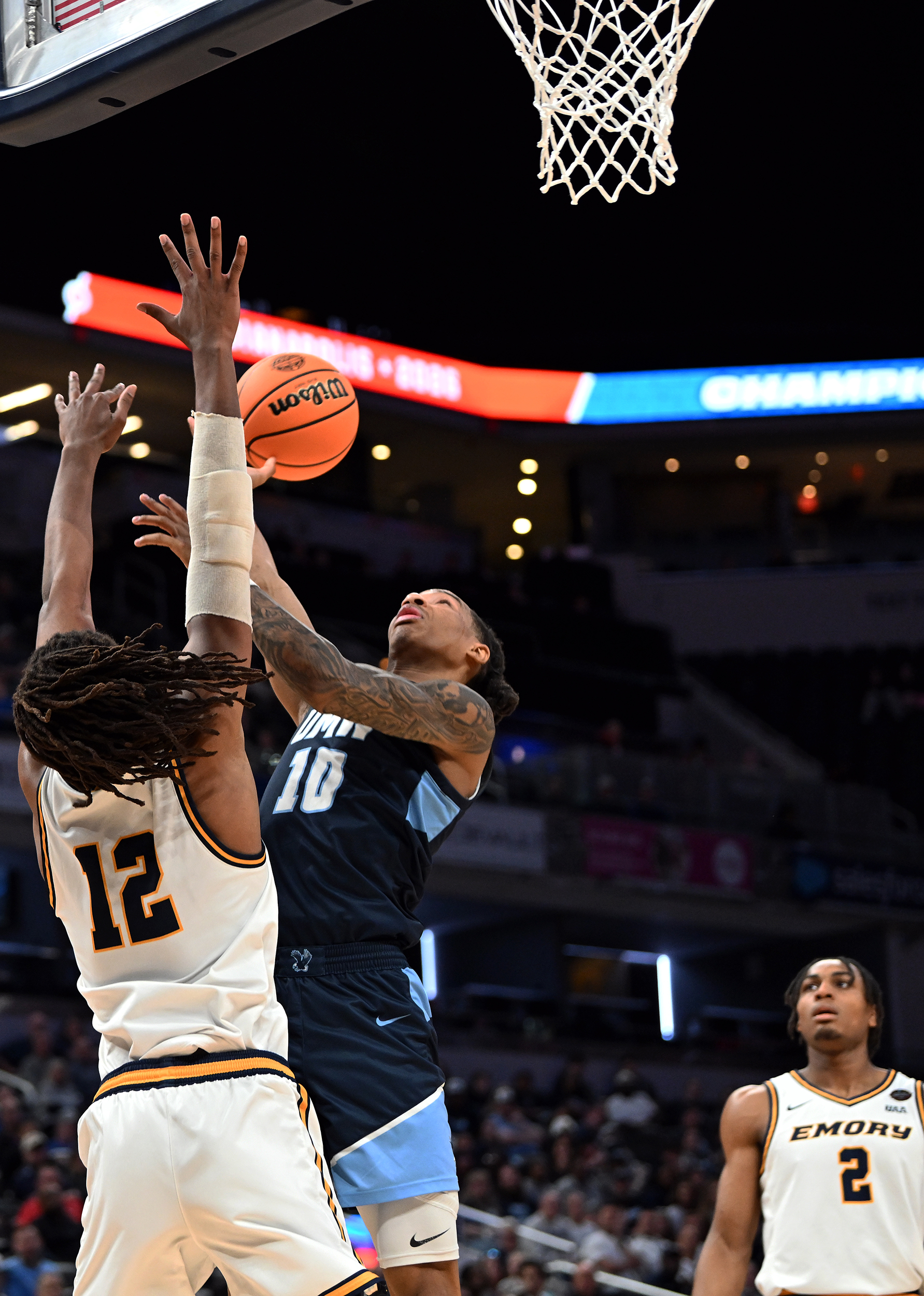 The University of Mary Washington Eagles win the NCAA DIII Championship Game against Emory University at Gainbridge Field-house in Indianapolis, IN Sunday April 5, 2026. Photo by Jeff Kearney.
