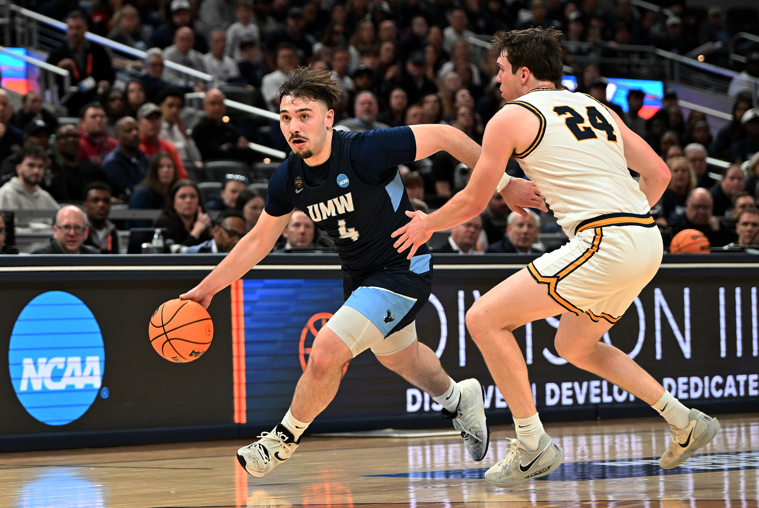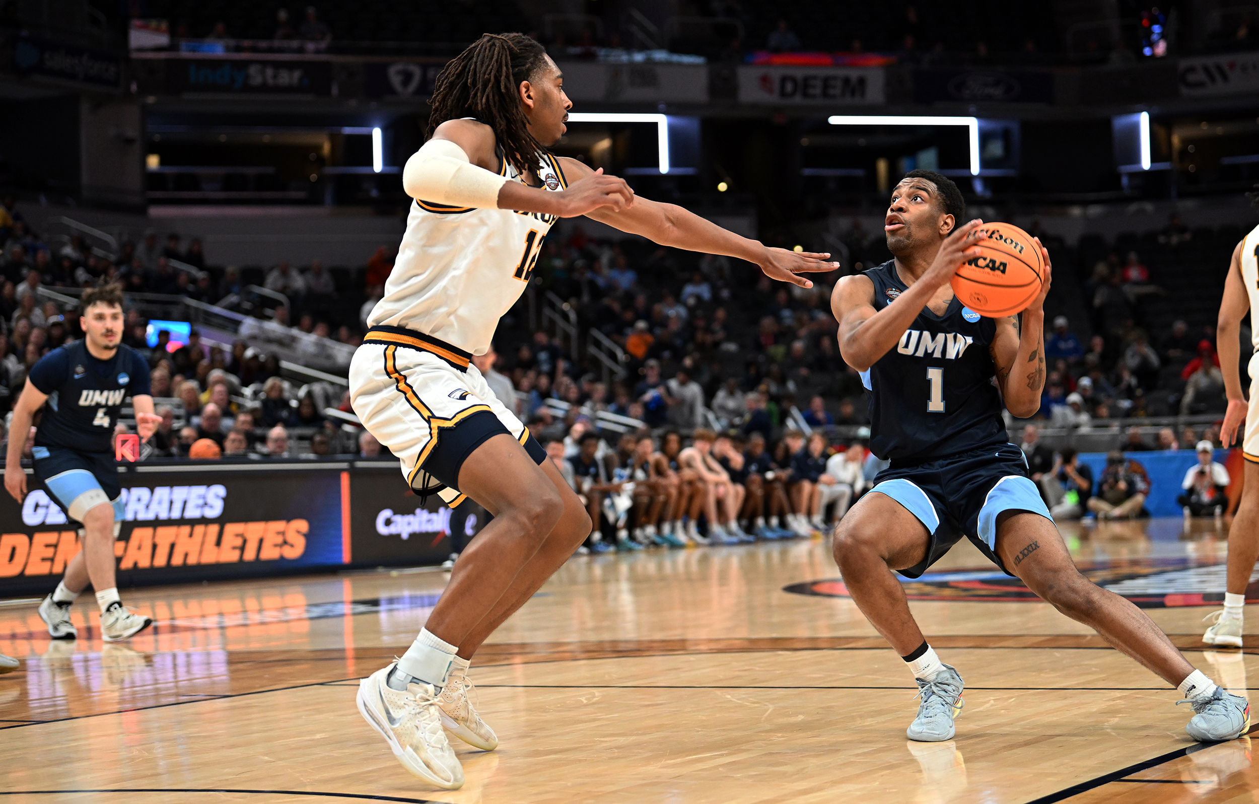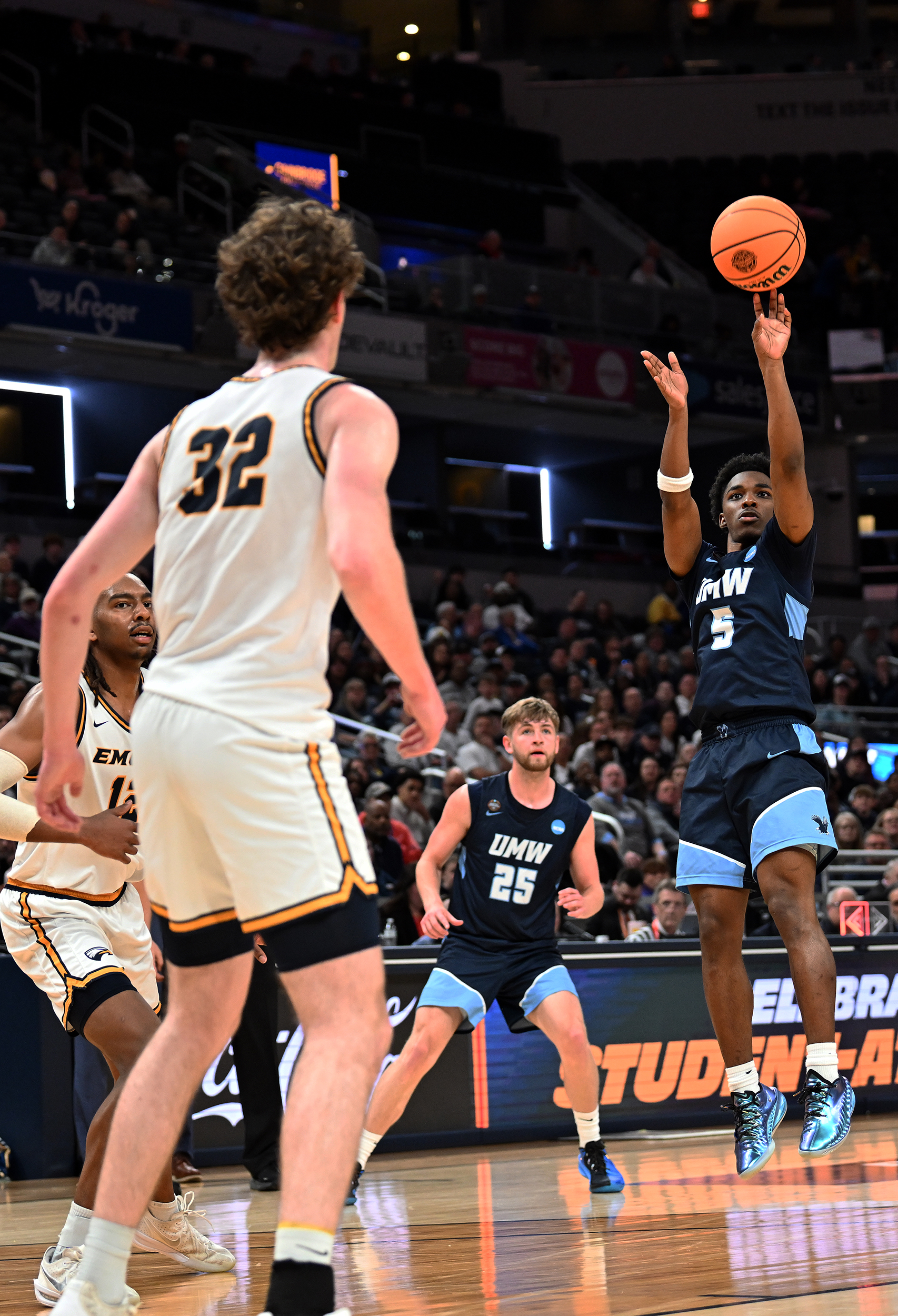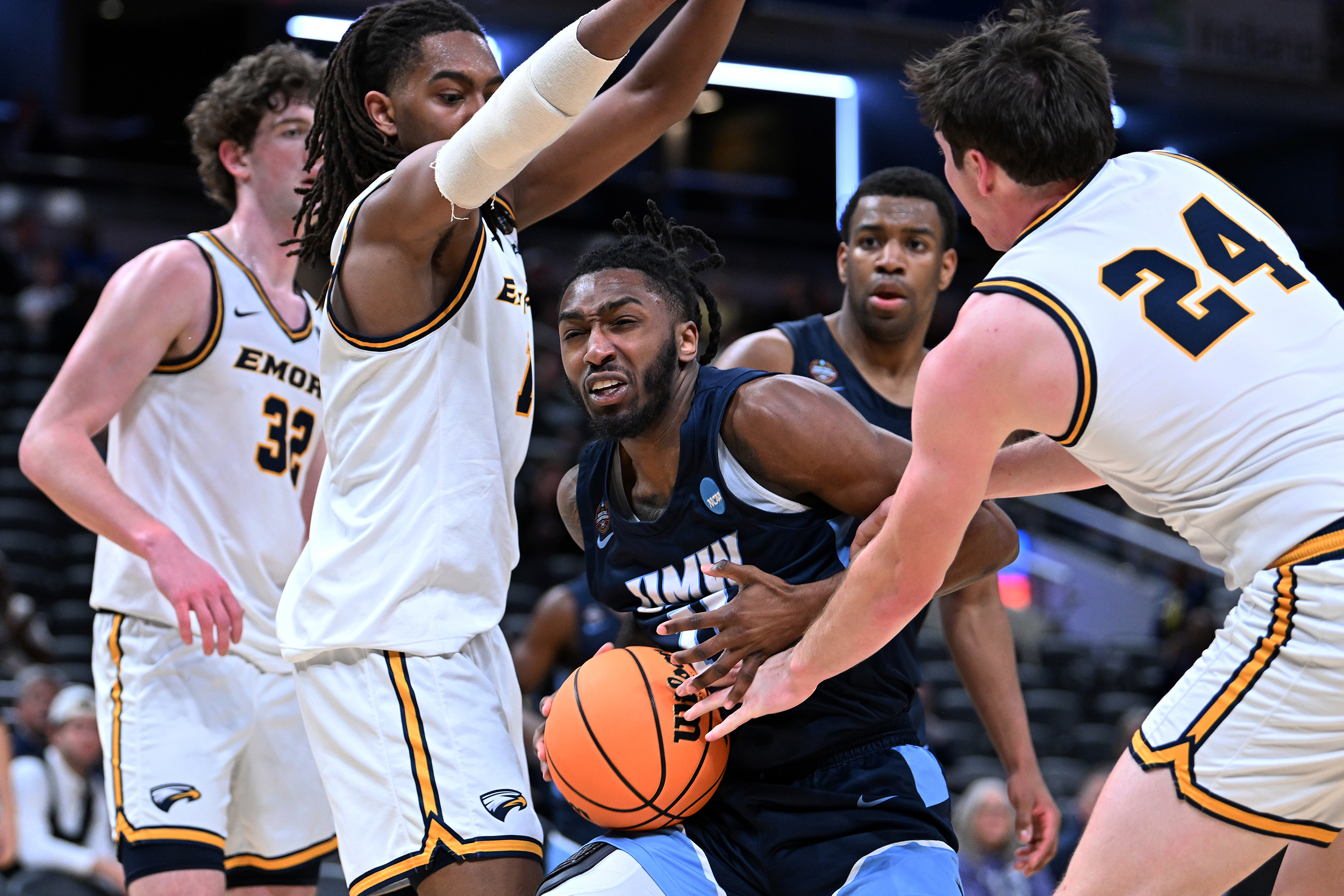 The University of Mary Washington Eagles win the NCAA DIII Championship Game against Emory University at Gainbridge Field-house in Indianapolis, IN Sunday April 5, 2026. Photo by Jeff Kearney.