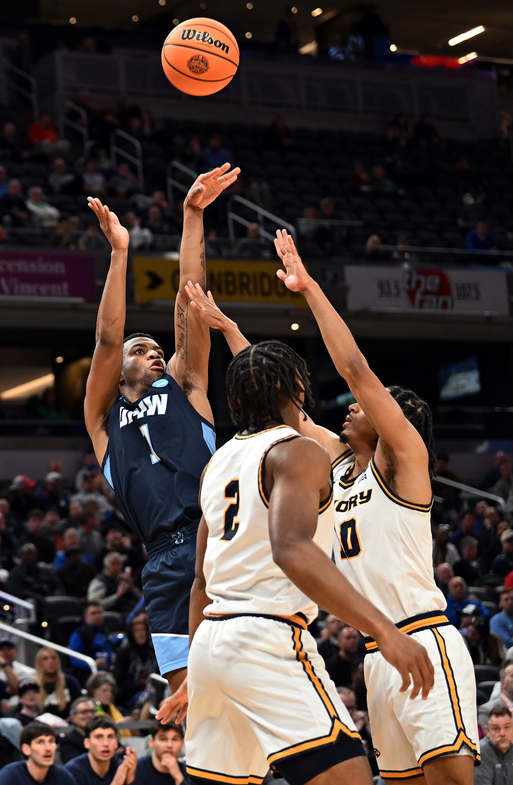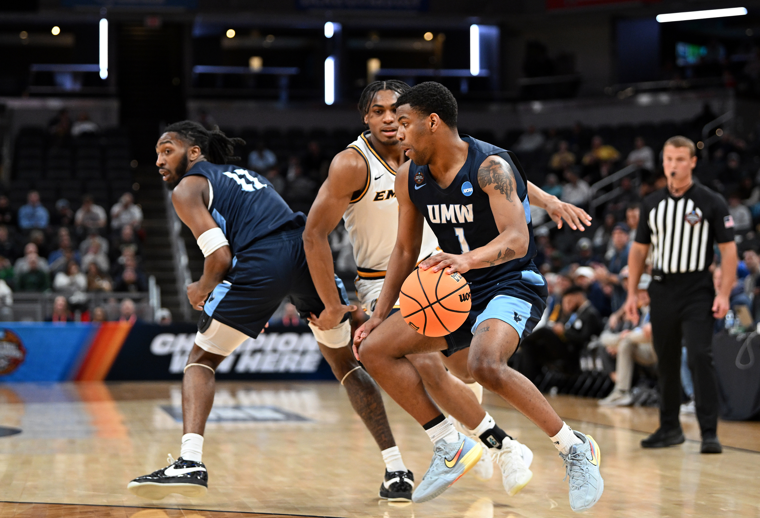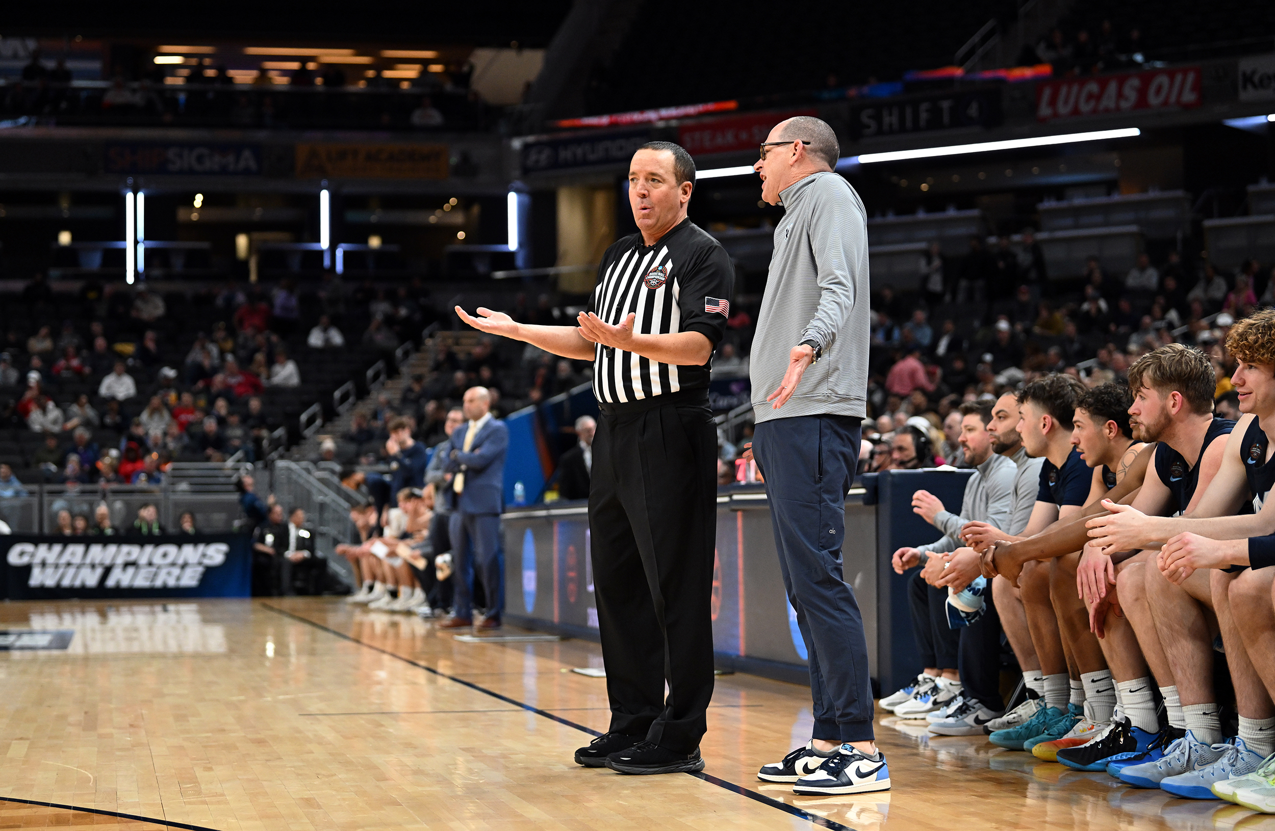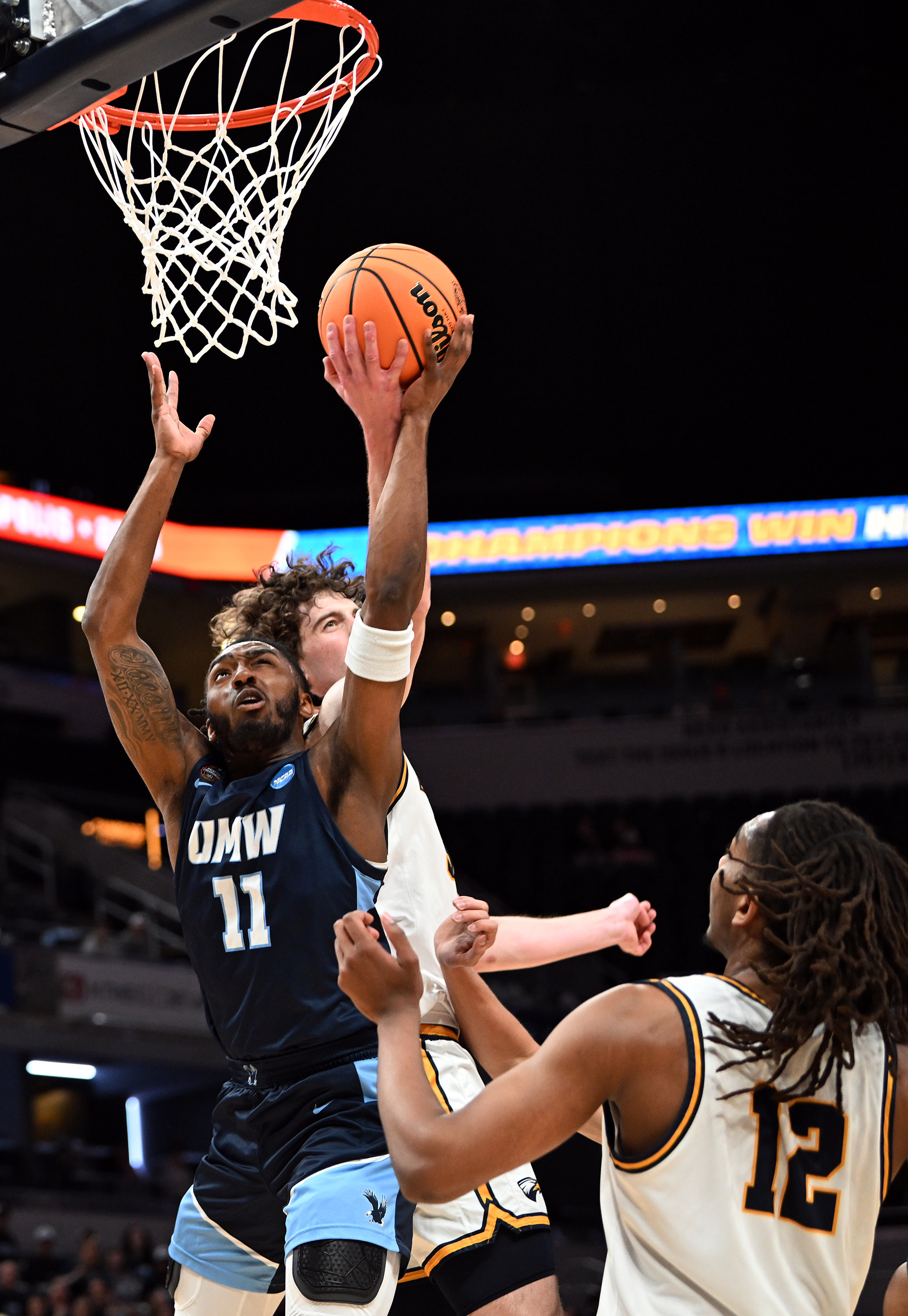 The University of Mary Washington Eagles win the NCAA DIII Championship Game against Emory University at Gainbridge Field-house in Indianapolis, IN Sunday April 5, 2026. Photo by Jeff Kearney.