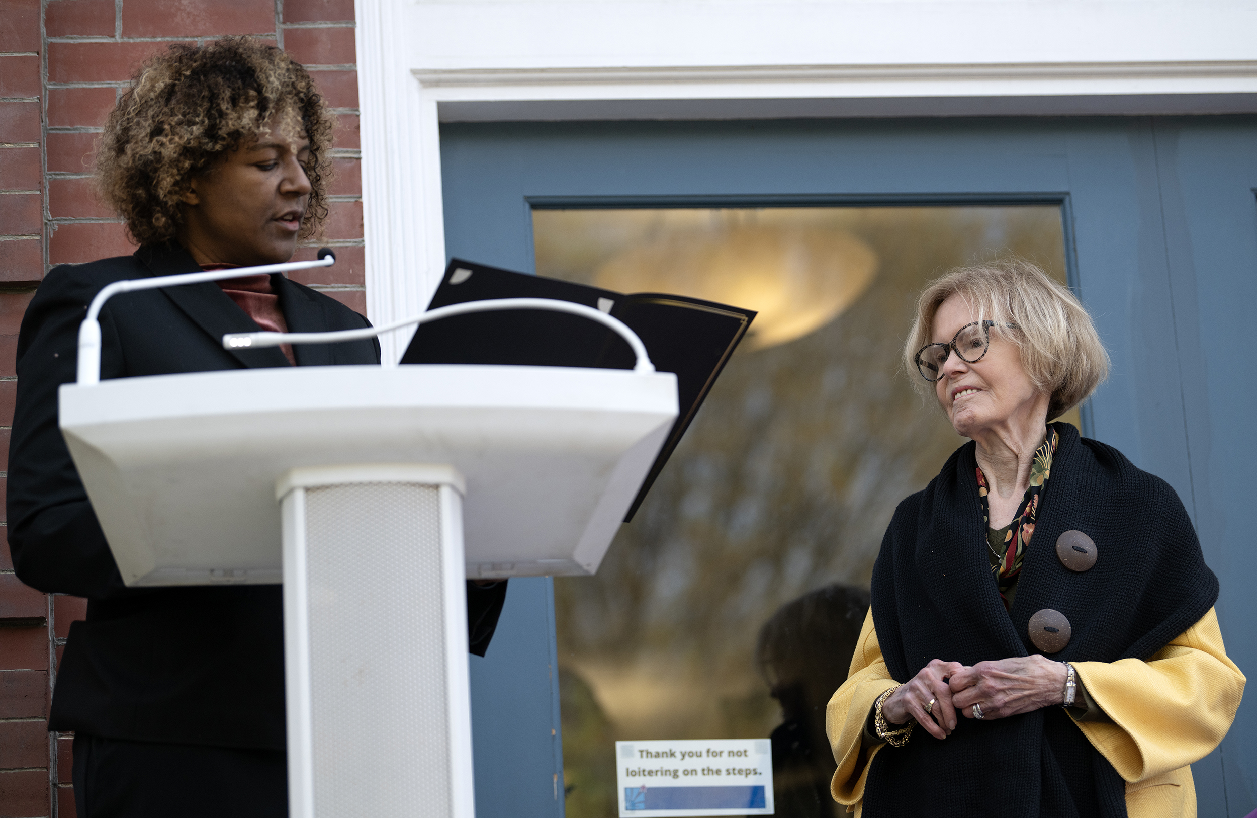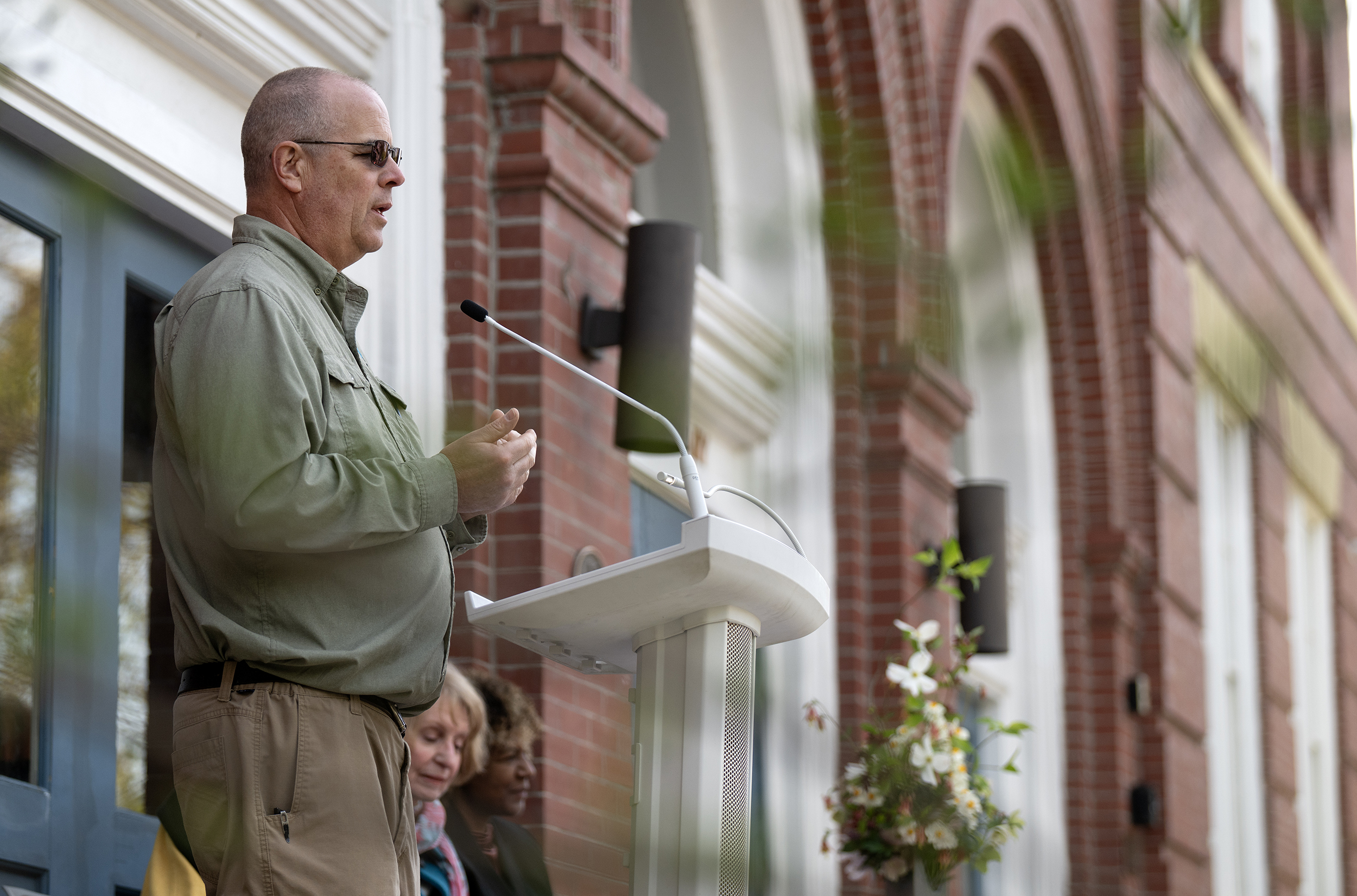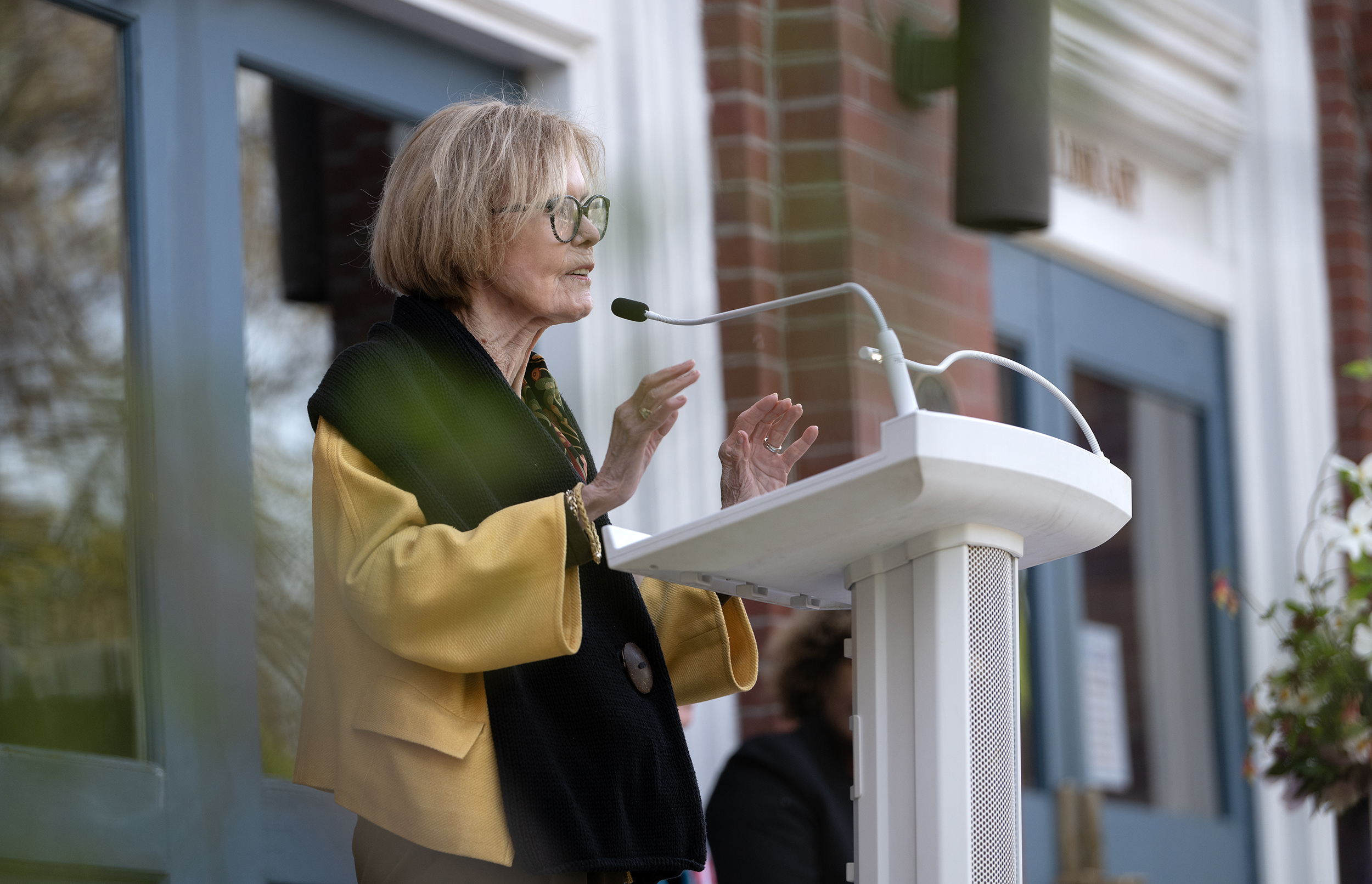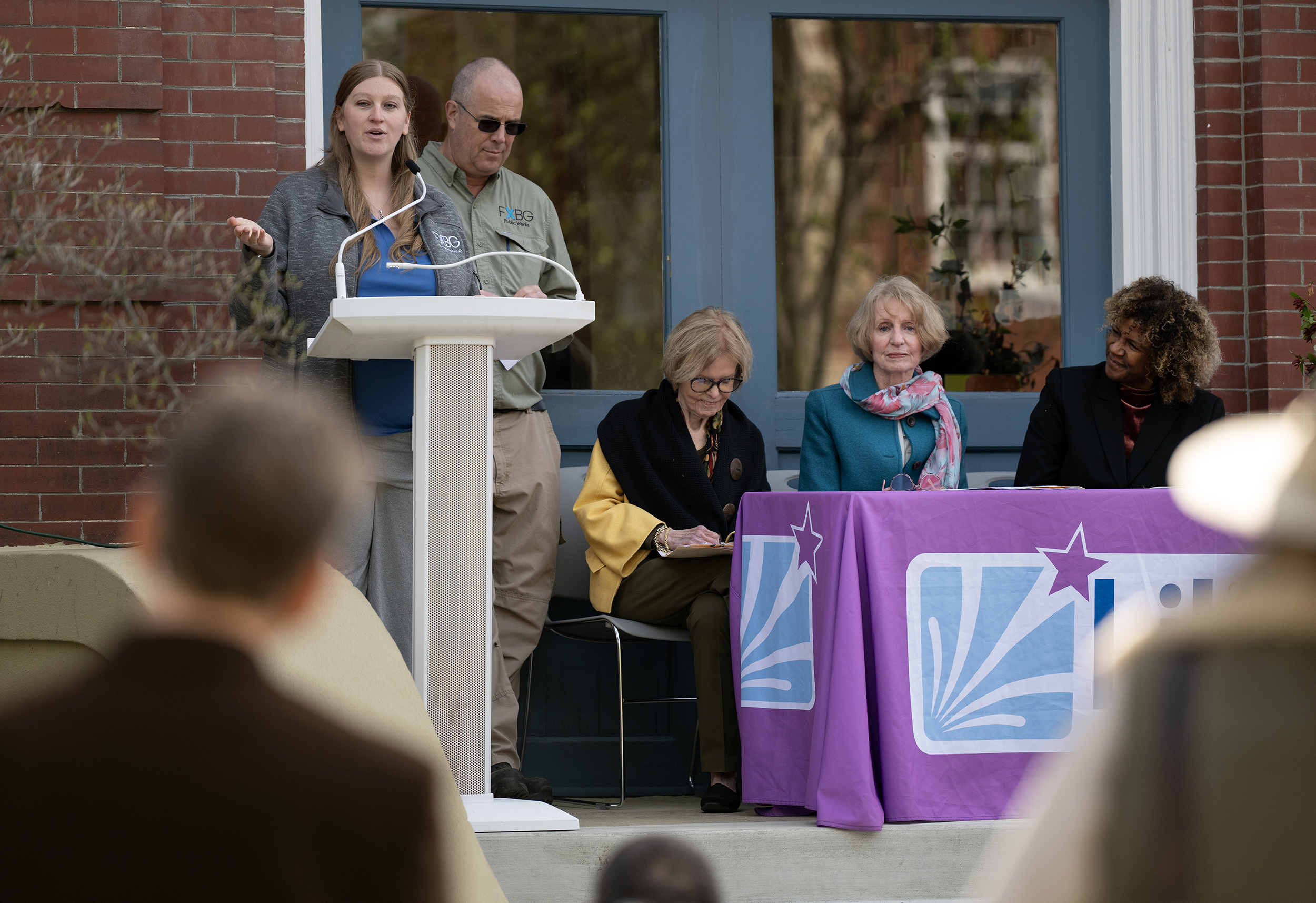 Held on the steps of the Rappahannock Library, the Fredericksburg Area Council of Garden Clubs and the City of FXBG honor Maggie McCormack and Ama Withers at the 38th Arbor Day Celebration Thursday April 9, 2026. Photo by Jeff Kearney.