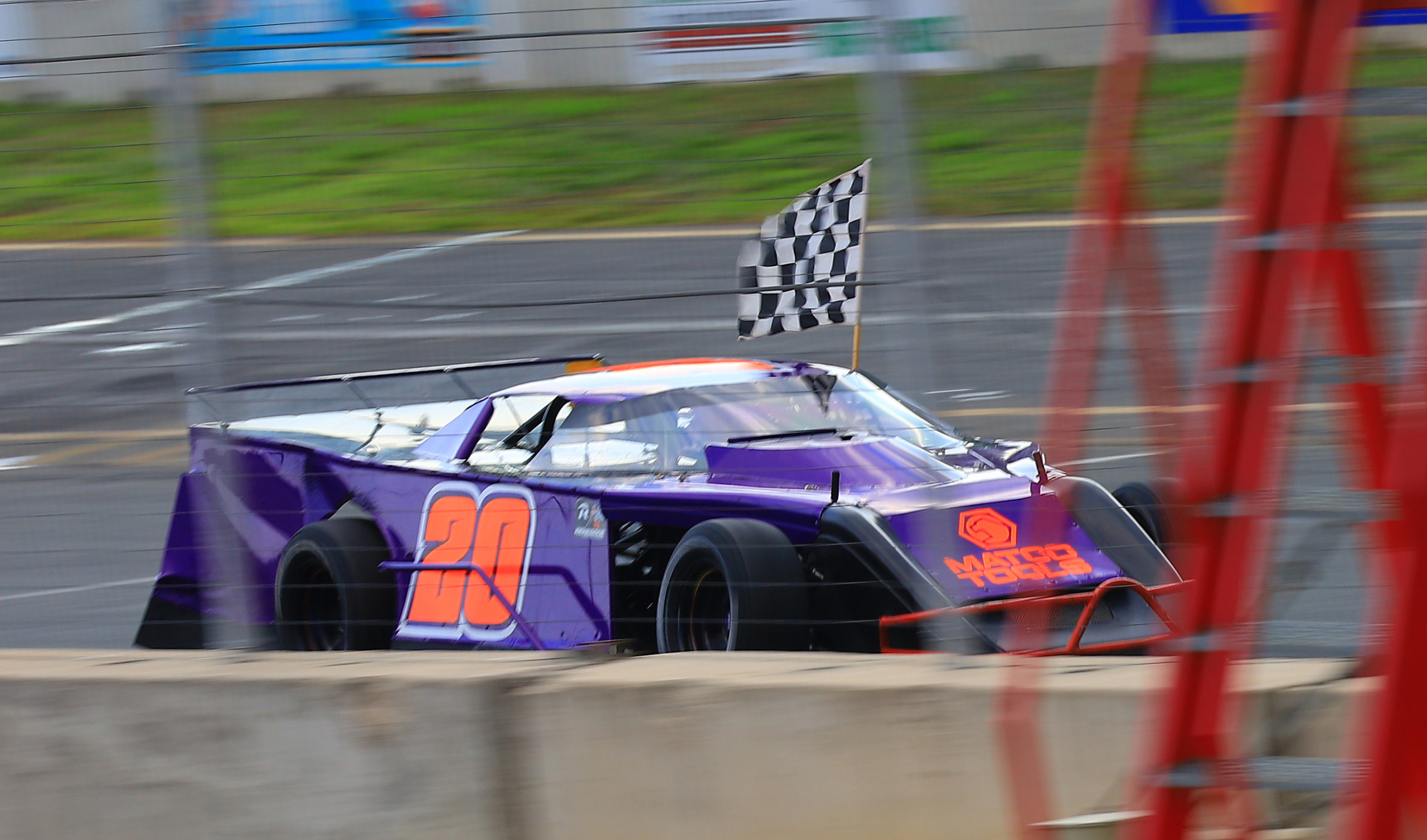 Chris Humblet (#20) took the checkered flag in the NASCAR Modified Series on opening day at Dominion Raceway.