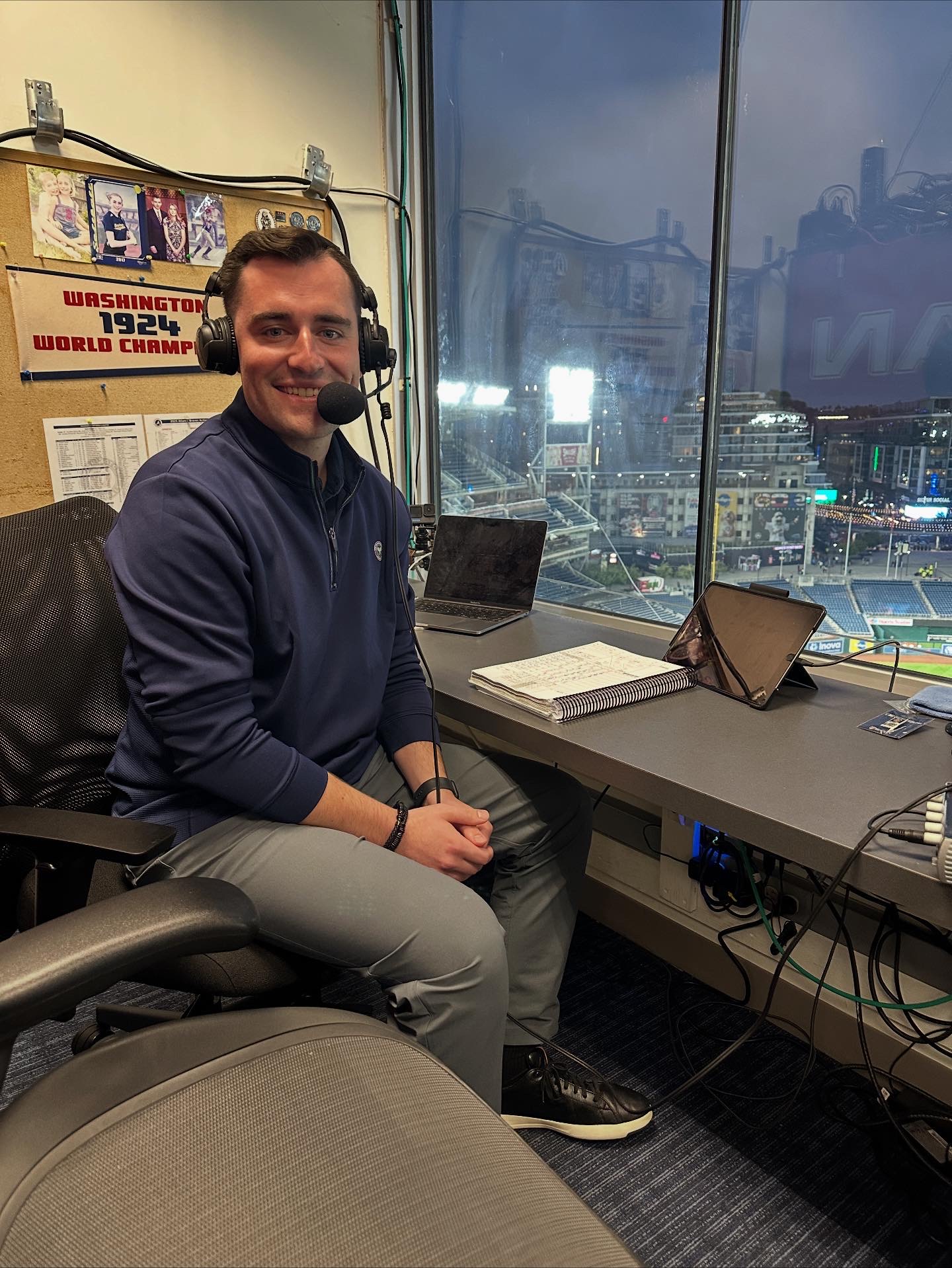Eric Bach sits in the broadcast booth at Nationals Park. (submitted photo)