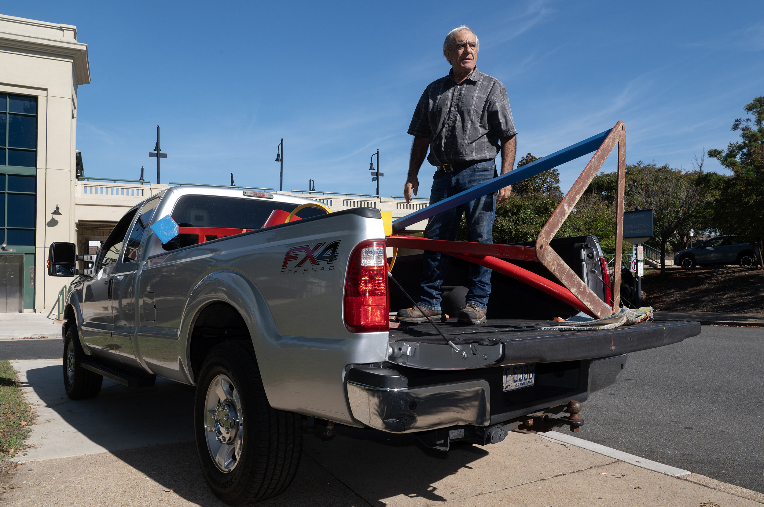 Artist Hanna Jubran prepares to unload his sculpture “In Motion” for installation at the VRE station as part of the 2025-26 Fredericksburg Public Sculpture Project Friday October 3, 2025. (Photos by Jeff Kearney)