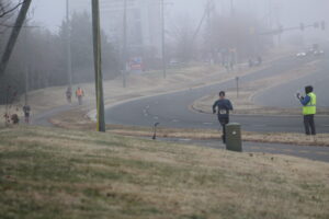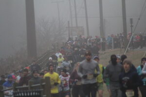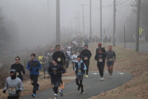 Despite temperatures in the 20’s and a Freezing Fog Advisory, runners showed up, disappearing into the mist! A cold, foggy morning never looked so inspiring!
