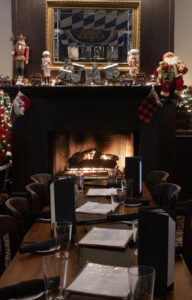 Those looking for winter ambiance would have a hard time finding a better spot than The Alpine Chef. Walking into the restauratnt, lin Fredericksburg’s historic former train station, feels a bit like stepping into the past. The interior’s dark wood beams are brightened by twinkle lights strung around the restaurant, and the staff has gone all out with the holiday decorations, from hanging ornaments to nutcrackers over the mantle. There are a variety of seating areas, but the room with the fireplace feels a bit like the den of a European lodge with its roaring fire and drawings of the old train station floor plans adorning the walls. The result is pure Old World charm, paired with attentive service and softly playing music.