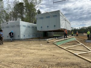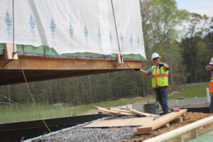 Central Rappahannock River Habitat for Humanity transported the “Future Builders Home” to a zero-step entry foundation on Stirrup Lane—where it will soon become home for a local veteran family.