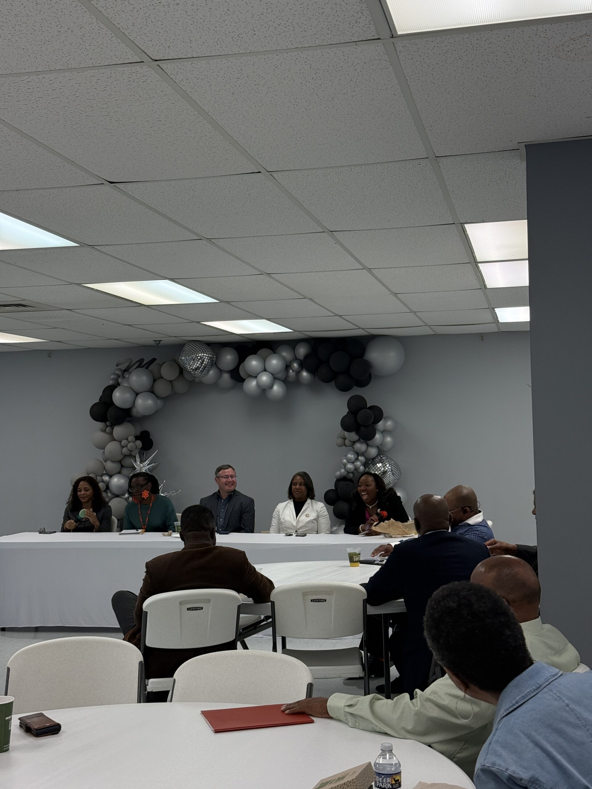 A black, silver and gray balloon sculpture was behind the panelists in the multipurpose room at United Faith Christian Ministry last week, but the speakers were talking strategy, not celebrating just yet.