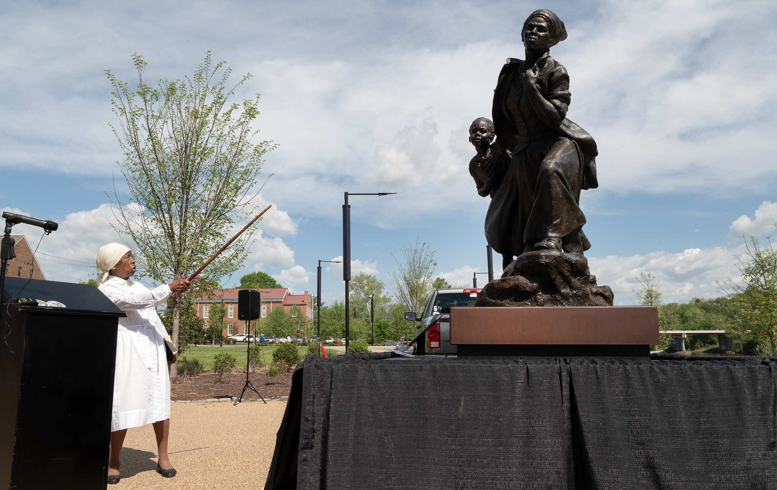 She paraphrased Tubman’s resolve and determination: “‘Okay, you going with me or you die. This is the way it is.’ But what got to me was that heart of love. She had to have such tremendous love for her people. And so to stand here right now — when I saw the statue, I just went breathless.”