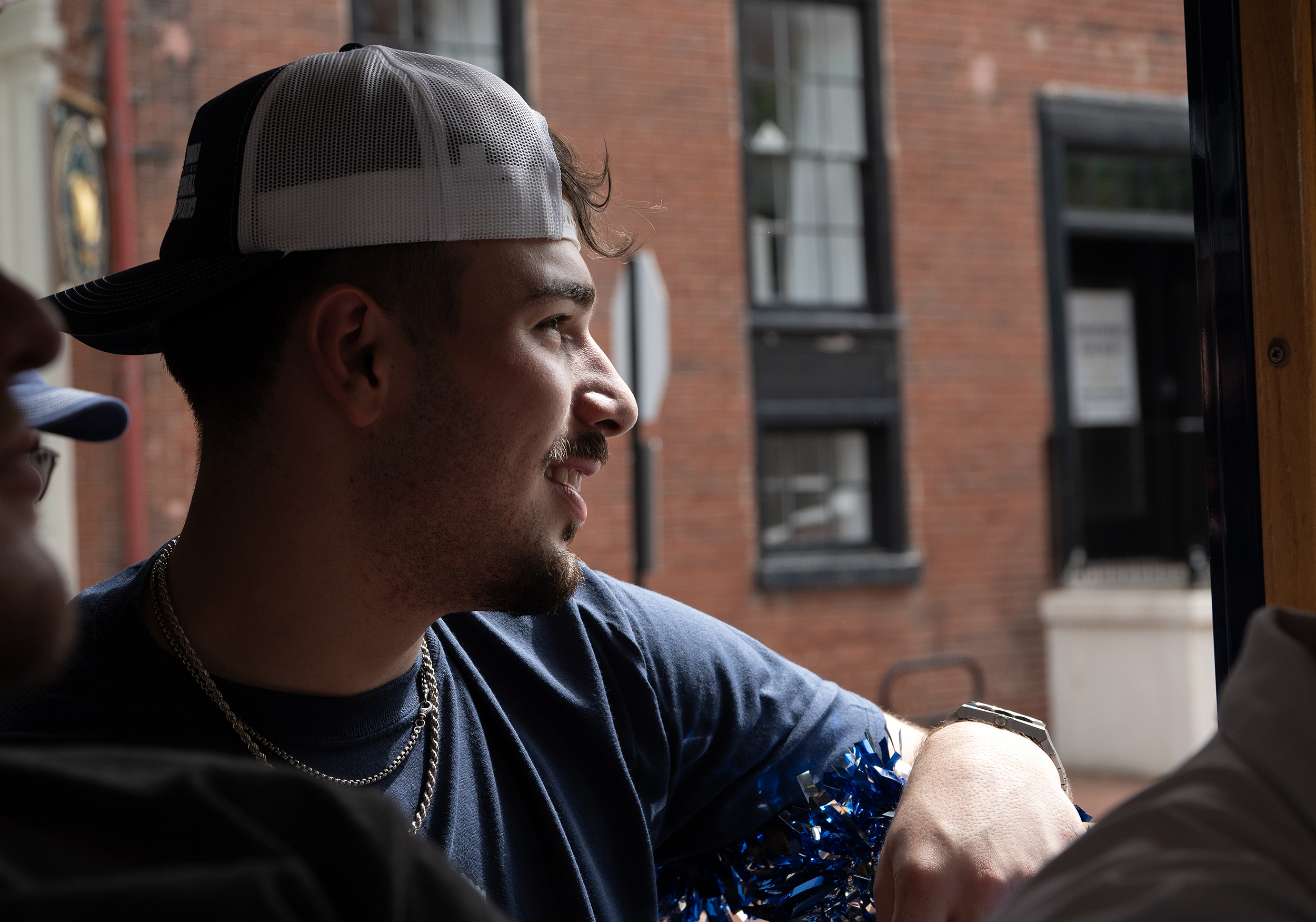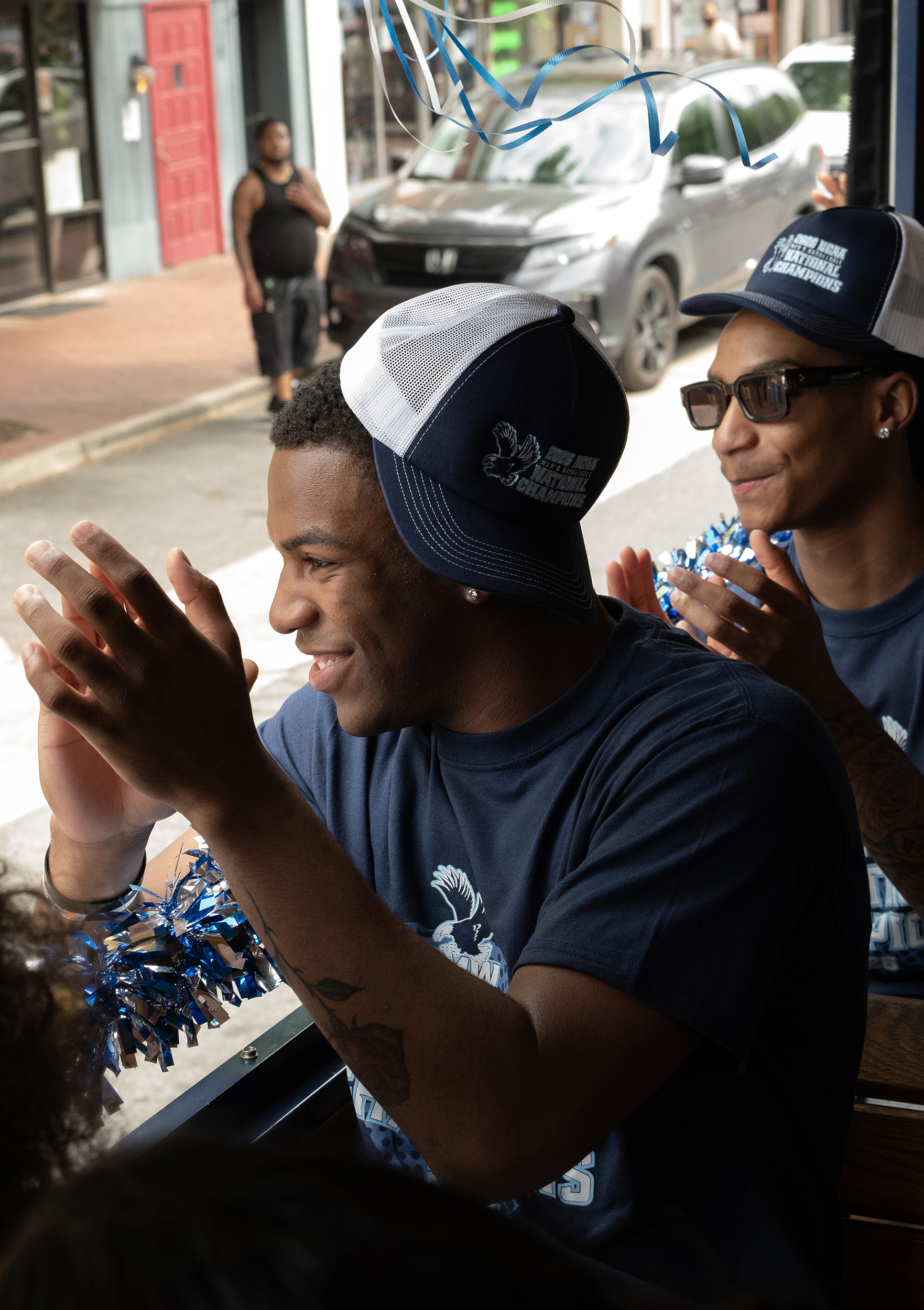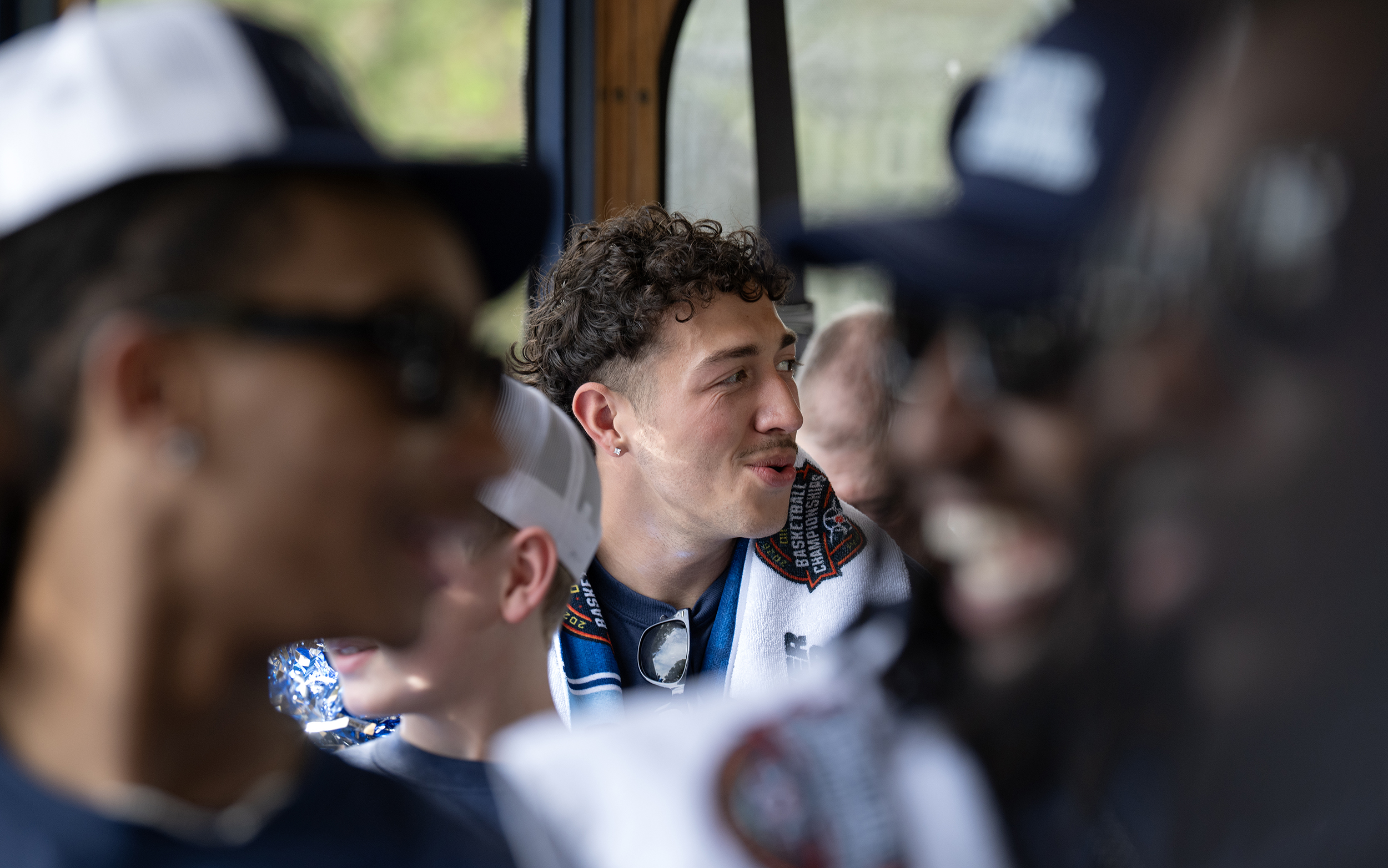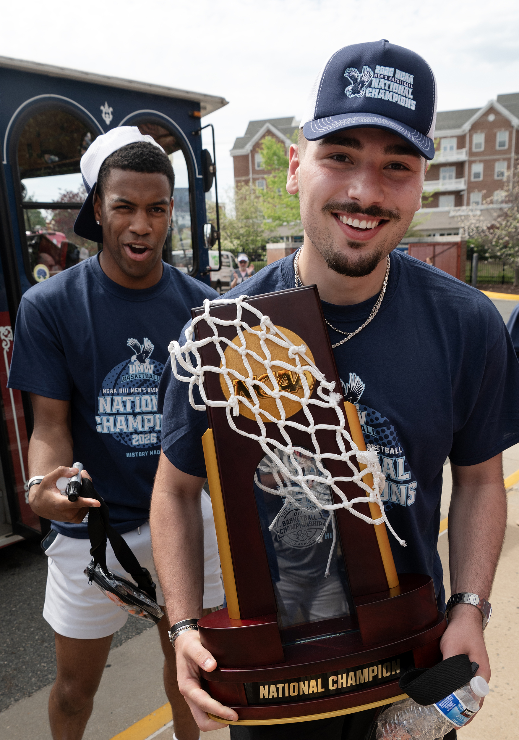 UMW’s Kye Robinson smiles during a celebratory trolley ride.