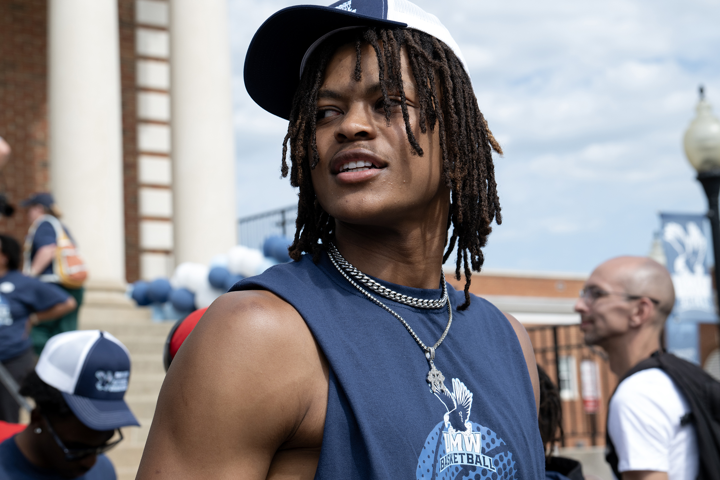 UMW’s Jadon Burgess smiles during a celebratory trolley ride.