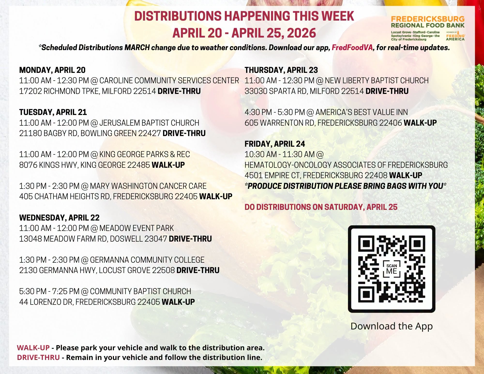 Come once a week for Drive-Thru or Walk-Up distributions.