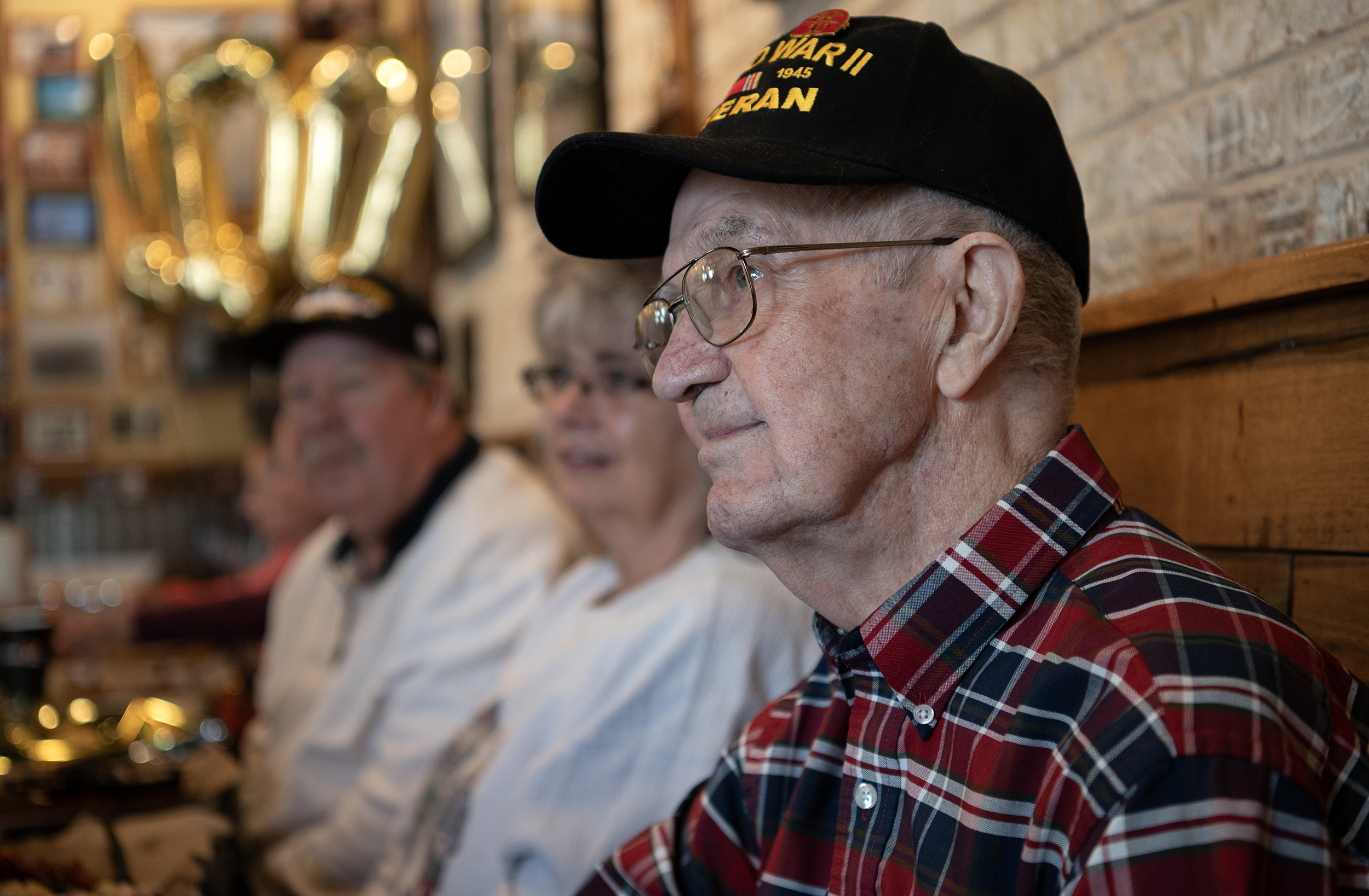 Justin Carter Jr. is turning 100, and the cap he wears identifies him as a World War II veteran — among the last of a generation that is quickly disappearing. His party occupies the back wall of the restaurant, plus several tables; there are balloons and a giant sheet cake announcing Carter’s entry into the elite ranks of centenarians.