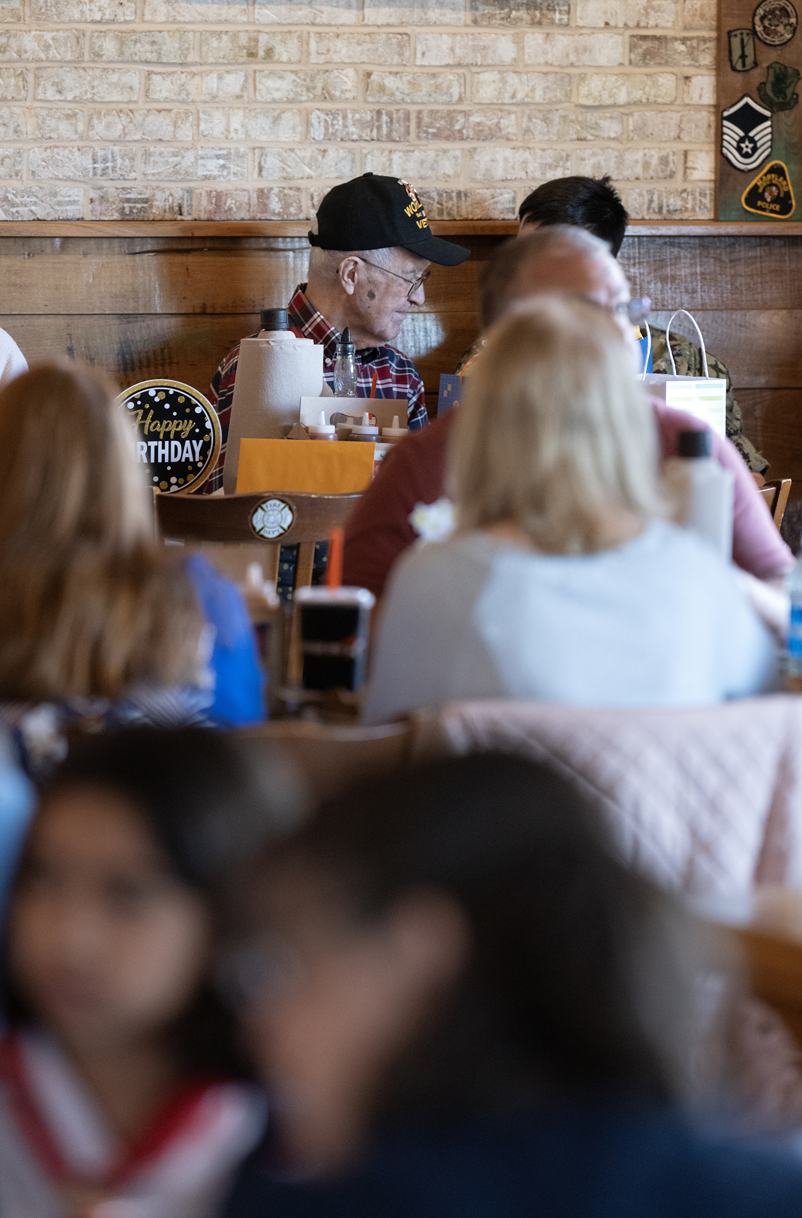 World War II veteran Justin Carter, Jr. celebrates his 100th Birthday with friends and family at Mission BBQ Monday April 20, 2026. (Photo by Jeff Kearney)