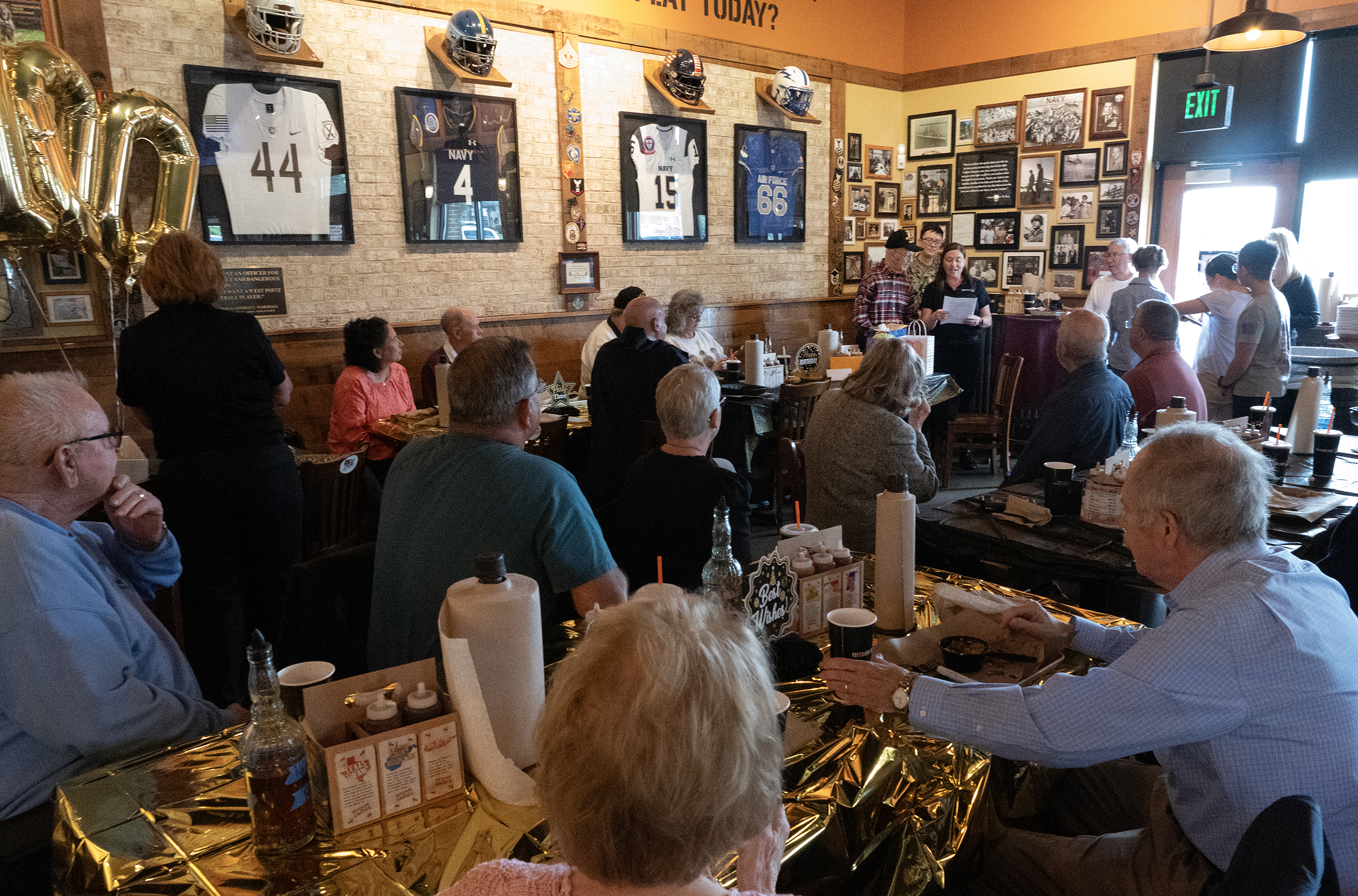 At Mission BBQ, that same ease carries through the room. People lean in a little closer when he speaks, as if proximity might help them hold onto what he is saying a little longer. Carter answers questions the way he always has — directly, without embellishment, as though the facts themselves are enough.
