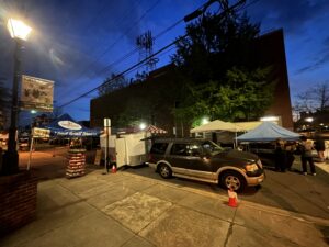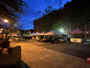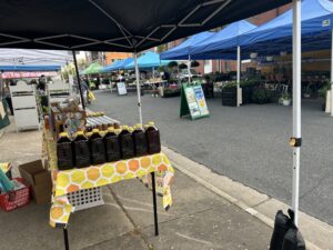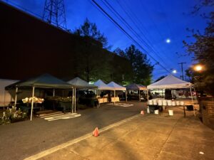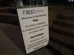 Fredericksburg Parks, Recreation & Events staff were at Hurkamp Park before 4:30 setting up. The vendors started coming about 5 to get ready. The Farmers Market got going around 7–until 1 at 500 William Street.