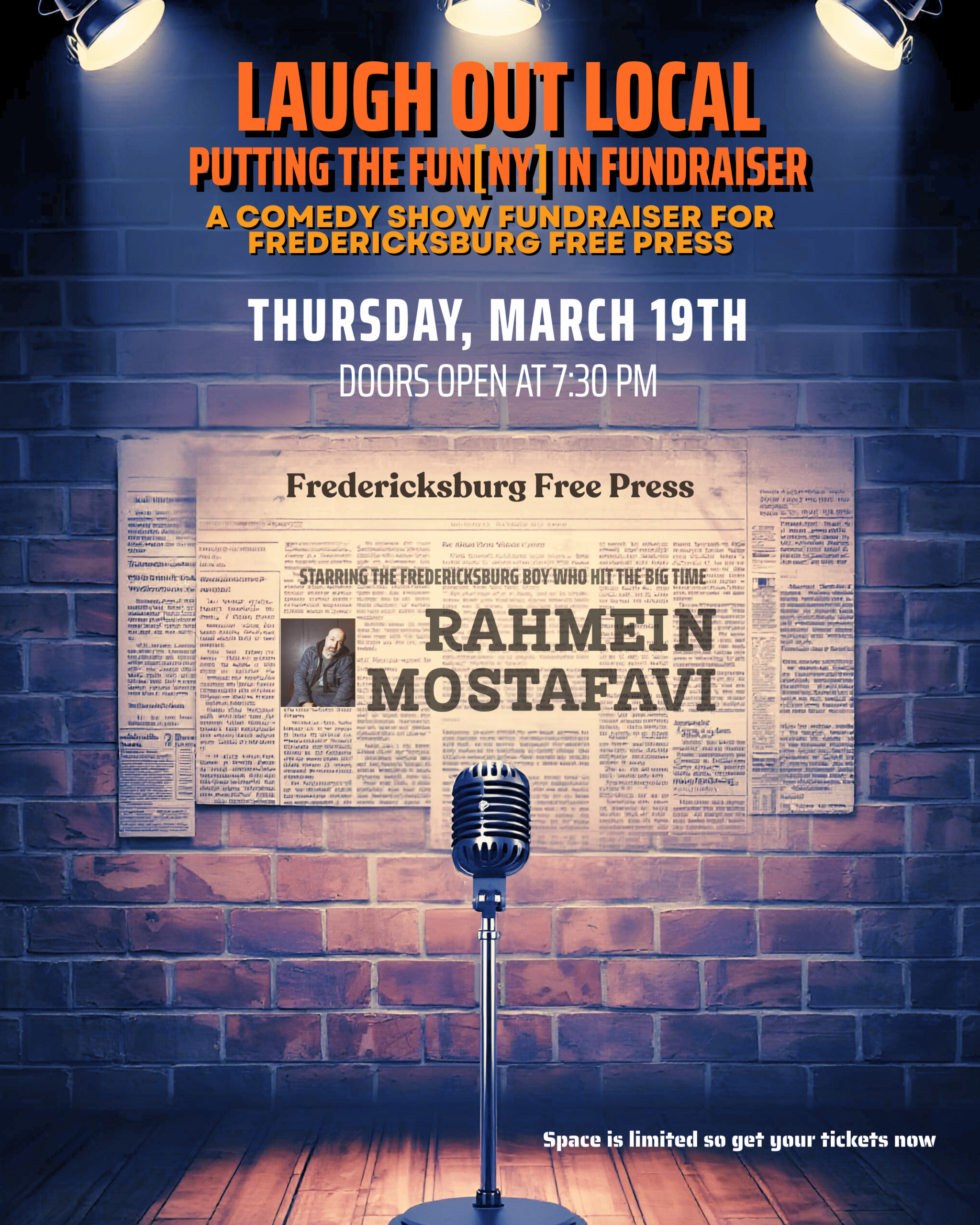 ** Fredericksburg Free Press is a 501(c)(3) nonprofit organization. A portion of each ticket purchase is tax-deductible. For federal income tax purposes, the deductible amount is limited to the portion of the contribution that exceeds the value of any goods or services received. Accordingly, $25 of each ticket purchase is eligible for an income tax deduction.