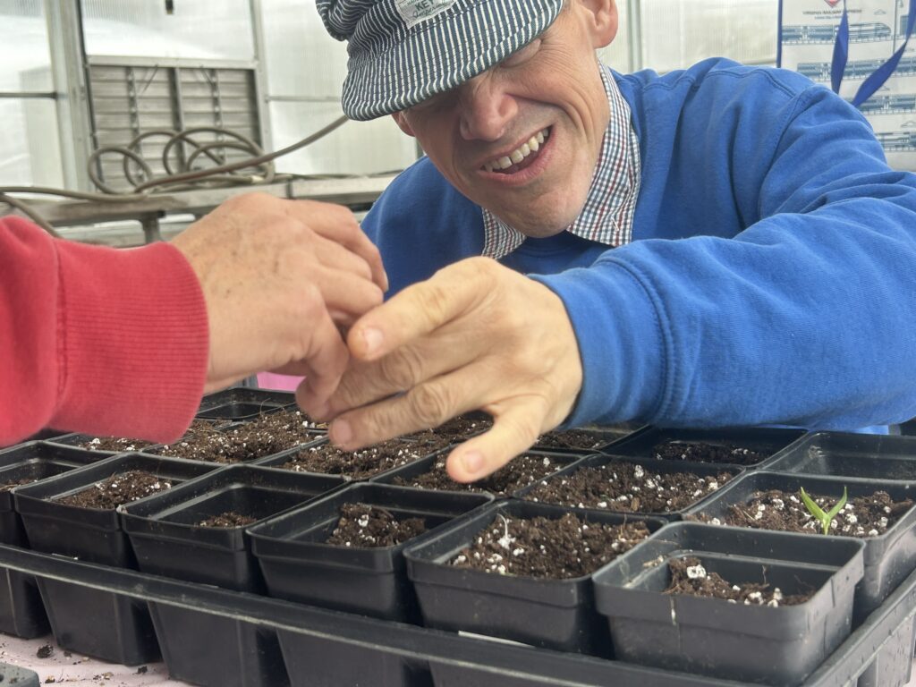 Inside the greenhouse at Rappahannock Adult Activities, Inc. on Kings Highway, in Stafford, seeds are going into soil as participants prepare for the annual Spring Plant Sale.