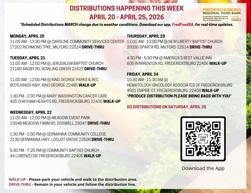 Find full details on the Food Bank Facebook Events Page or free FREDFOODVA app.