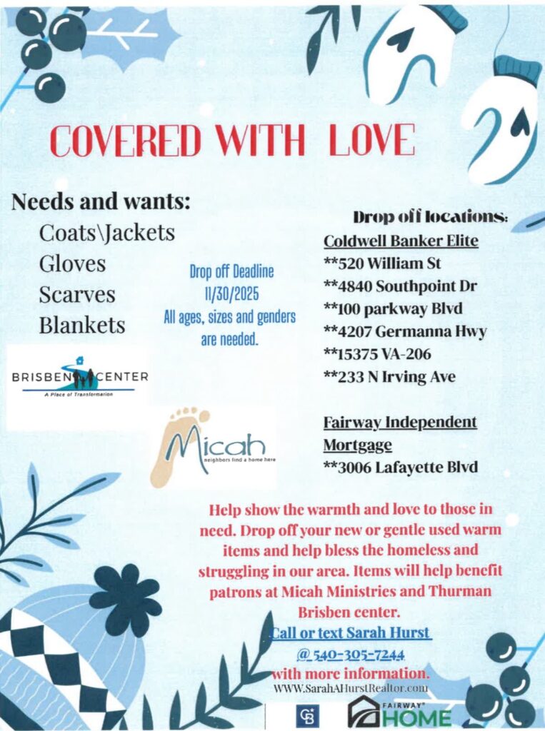 Sarah Hurst has launched a community appeal for coats, jackets, gloves, scarves and blankets to support Micah Ministries and the Thurman Brisben Center.